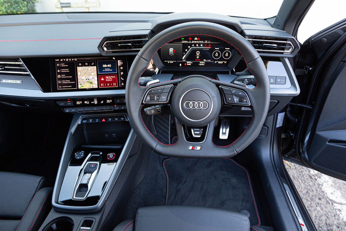 Once you’ve ventured out of the comfort zone and found some traffic-free corners, the S3 showcases its high levels of grip and balance. We pushed and tried to coax it into some shenanigans, but the feeling of stability was impressive. With the adaptive dampers set to their sportiest mode, there was less body roll and we enjoyed how agile it was.