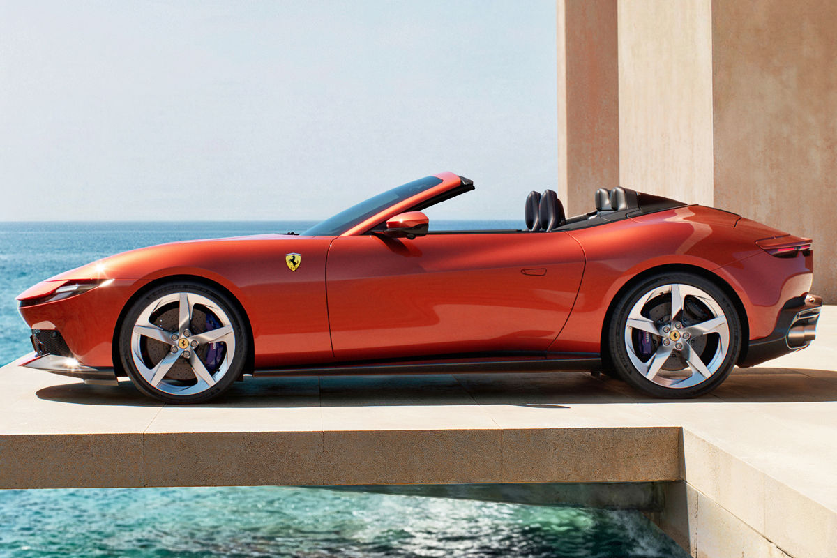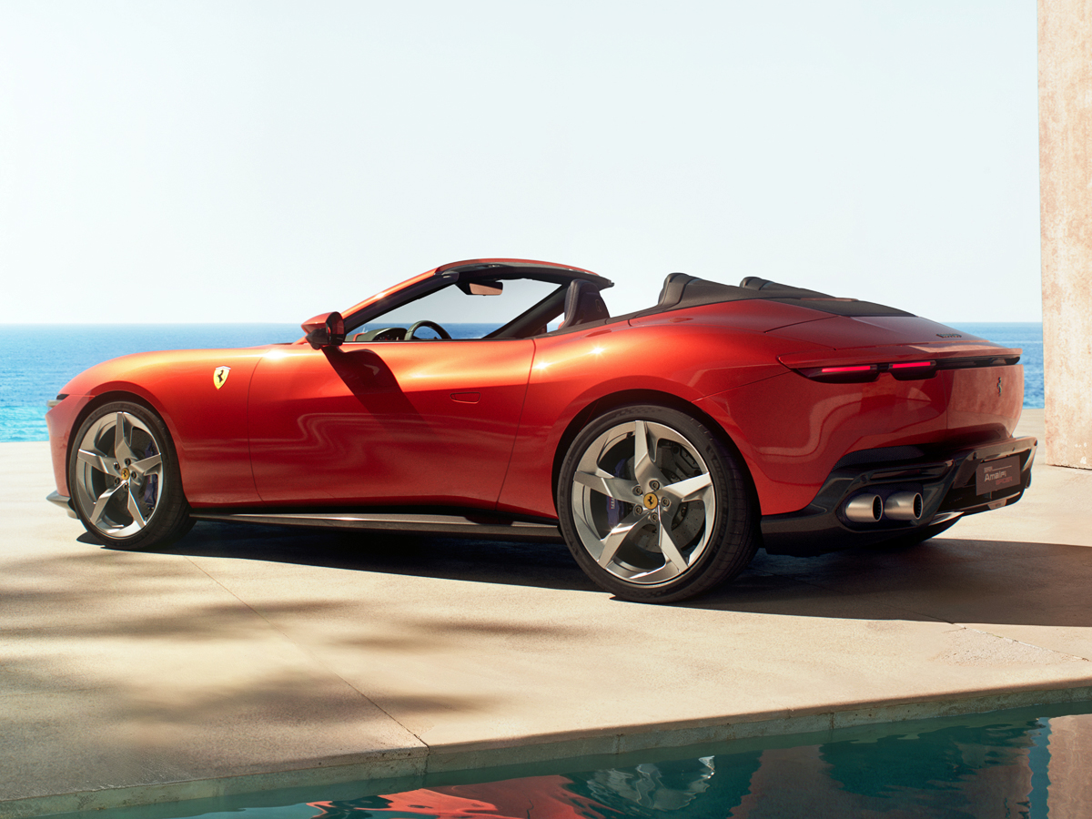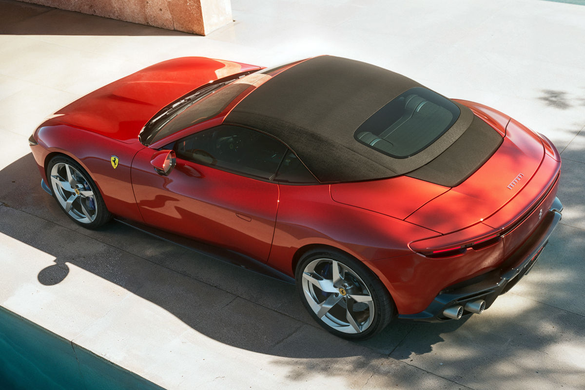 The fully automatic soft-top uses magnesium ribs throughout its structure – including the 2 flat ribs, front roof frame and rear window frame – to achieve a coupé-like roofline when closed, with no visible structural elements interrupting the fabric’s arc from windscreen to stowage lid.