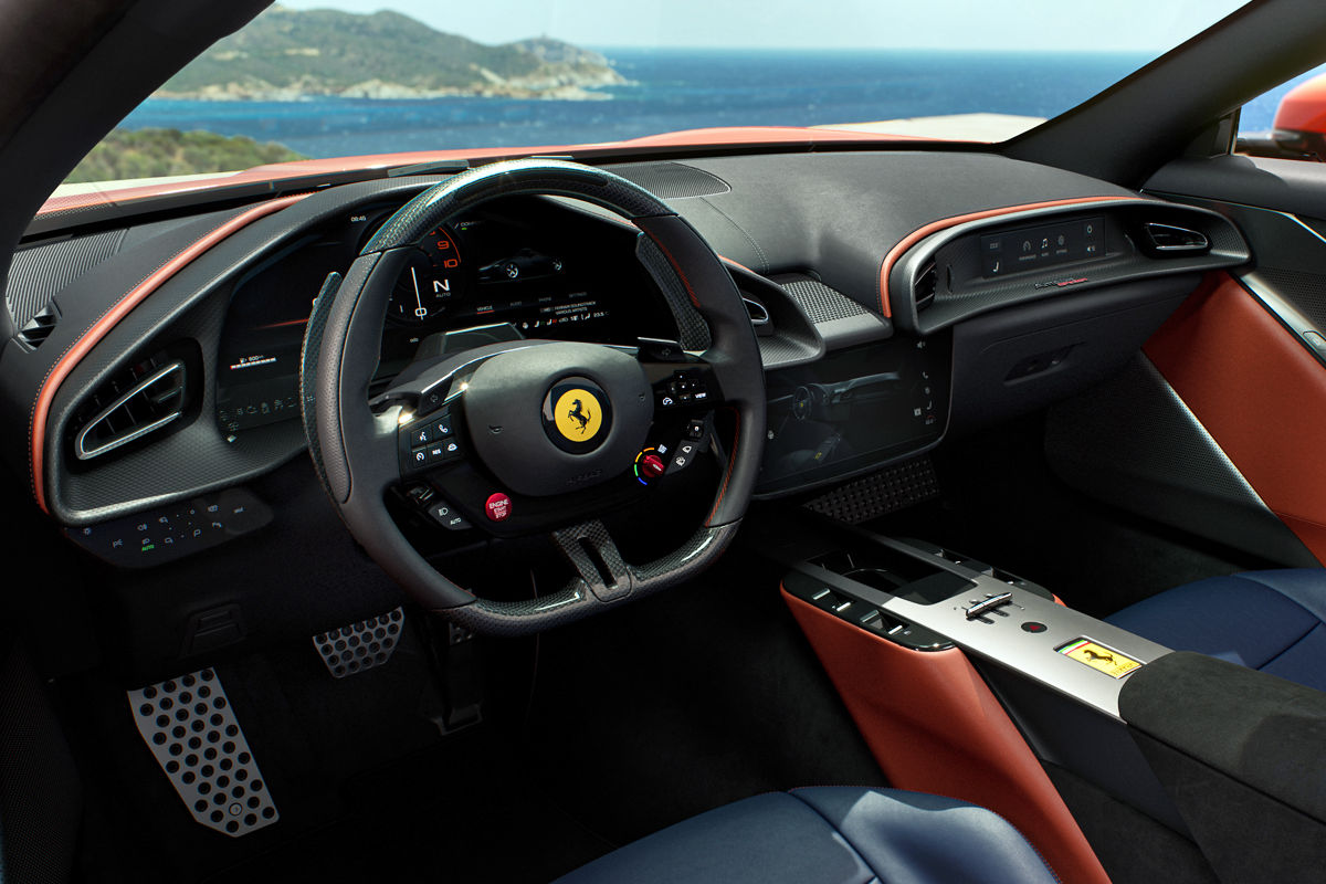 Centre-lock magnesium wheels – 20-inch front, 21-inch rear (saves around 9 kg of rotating mass).