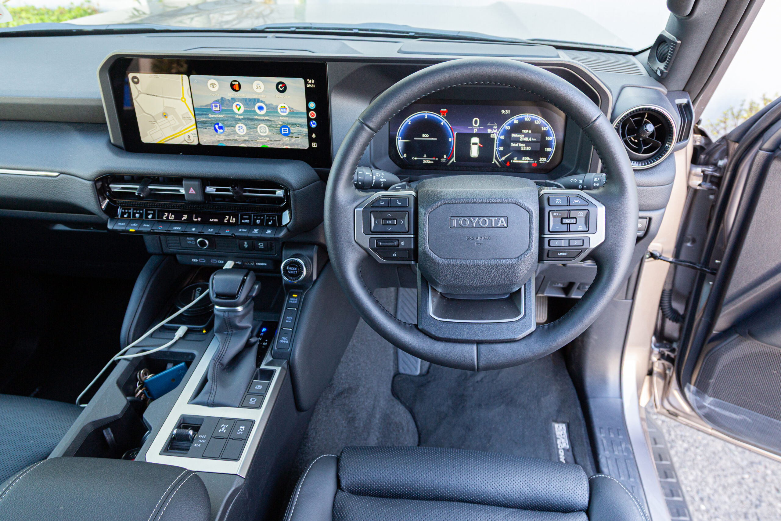 Climb inside and you’re greeted by a high-riding setup with excellent outward visibility. The latest iteration of Toyota’s products have addressed the old-school cabin layout and lack of tech (looking at you, Fortuner) and the Prado’s cabin blends robust ergonomics with modern tech and convenience.