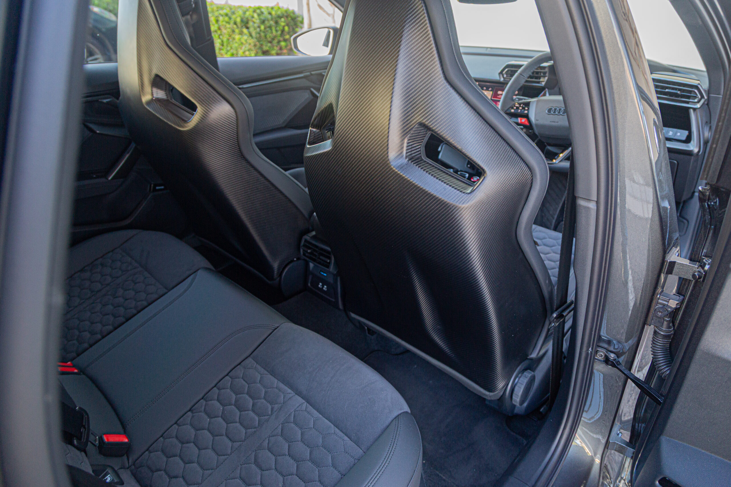 Optional lightweight carbon-fibre sports bucket seats with integrated thorax airbag, electric height adjustment and manual longitudinal adjustment are available, as is three-stage seat heating.
