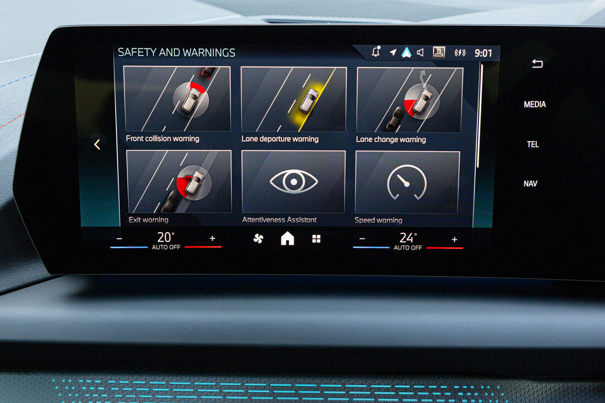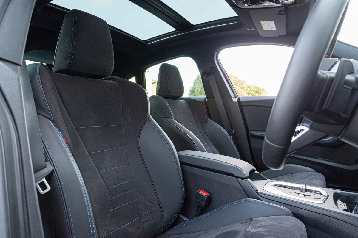 The driving position is excellent, with the (optional) front sports seats offering lots of support in all the right places and the steering wheel – with its rim perhaps a bit too chunky, for some people’s taste – also providing a wide range of rake- and reach-adjustment.