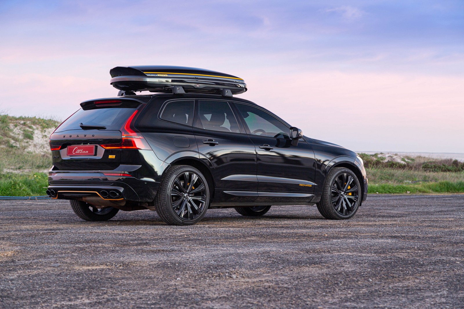 The Volvo XC60’s styling is best described as neat and elegant or, if we have to be critical, inoffensive… or “safe”. So, Volvo Car SA – which clearly had a “Hold my Aquavit” moment – decided to adorn its executive SUV with black 21-inch 5-spoke diamond cut alloys, a glossy black wrap, yellow edge detailing and -brake callipers, a custom set of bumpers, as well as a subtle “Polestar Engineered” badge on the tailgate. An aero-tuned branded roof box rounds off the package but, in case you missed them, the four large-bore ends of the sports exhaust system protrude from the rear valance, but more on those later.
