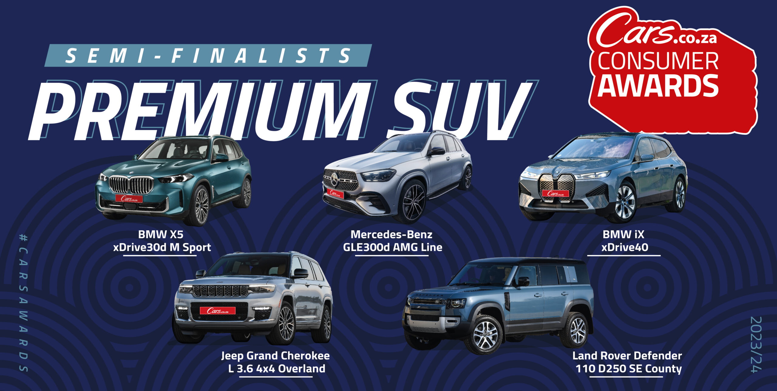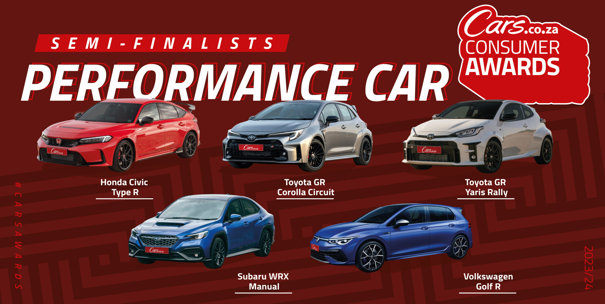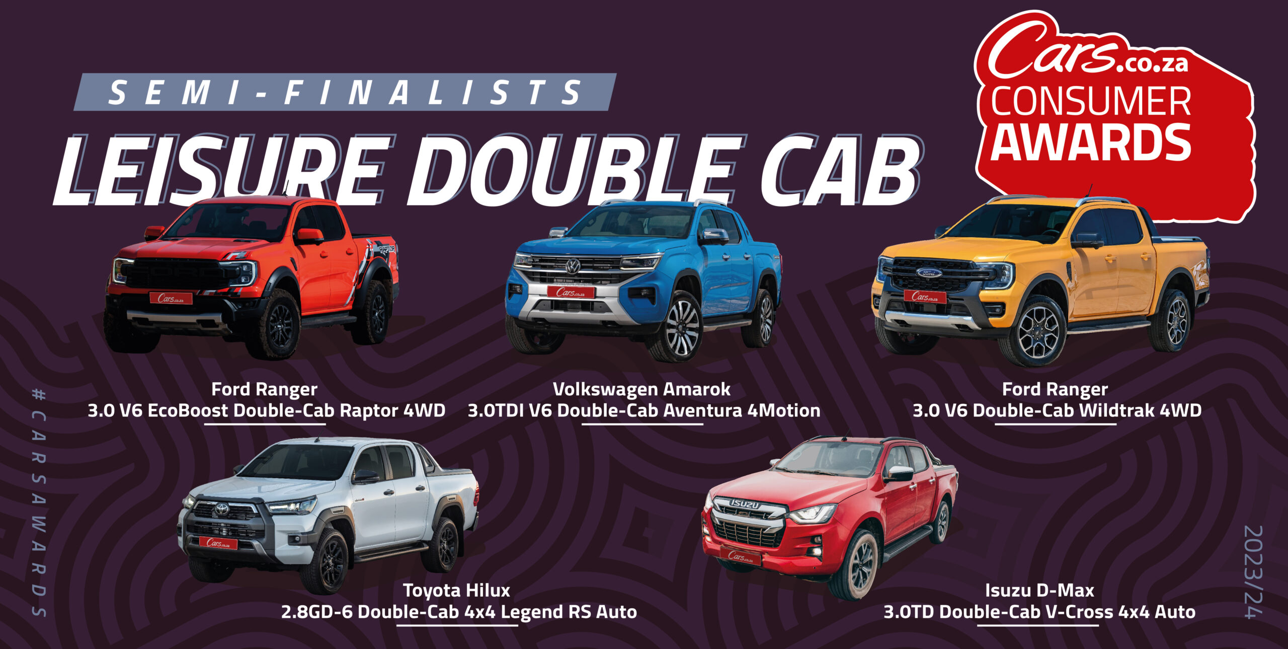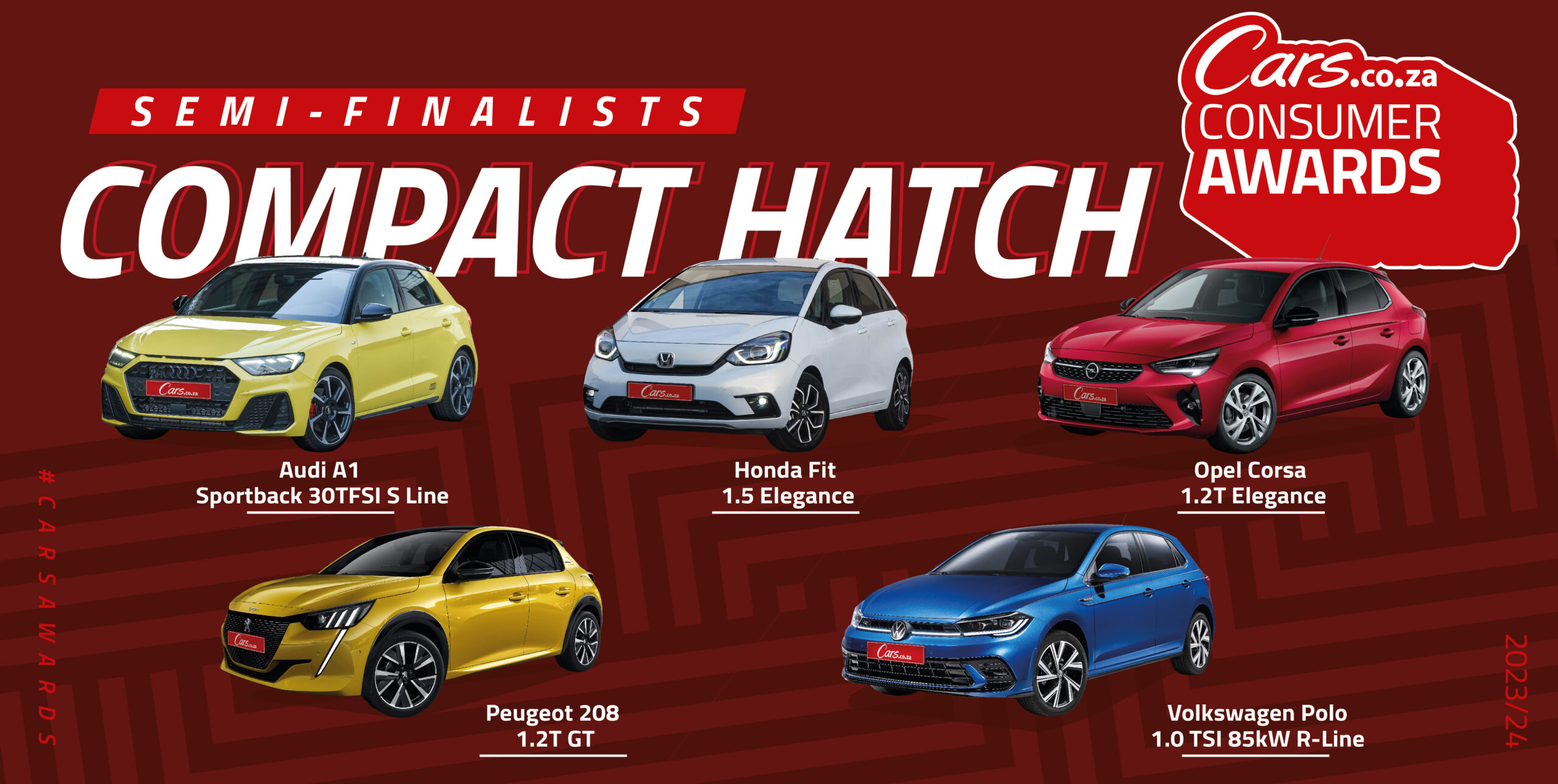These are the 65 semi-finalists – 5 in each of 13 vehicle categories – of the 2023/24 Cars.co.za Consumer Awards. The 39 finalists of the 7th iteration of South Africa’s definitive automotive awards programme will be chosen from this list.