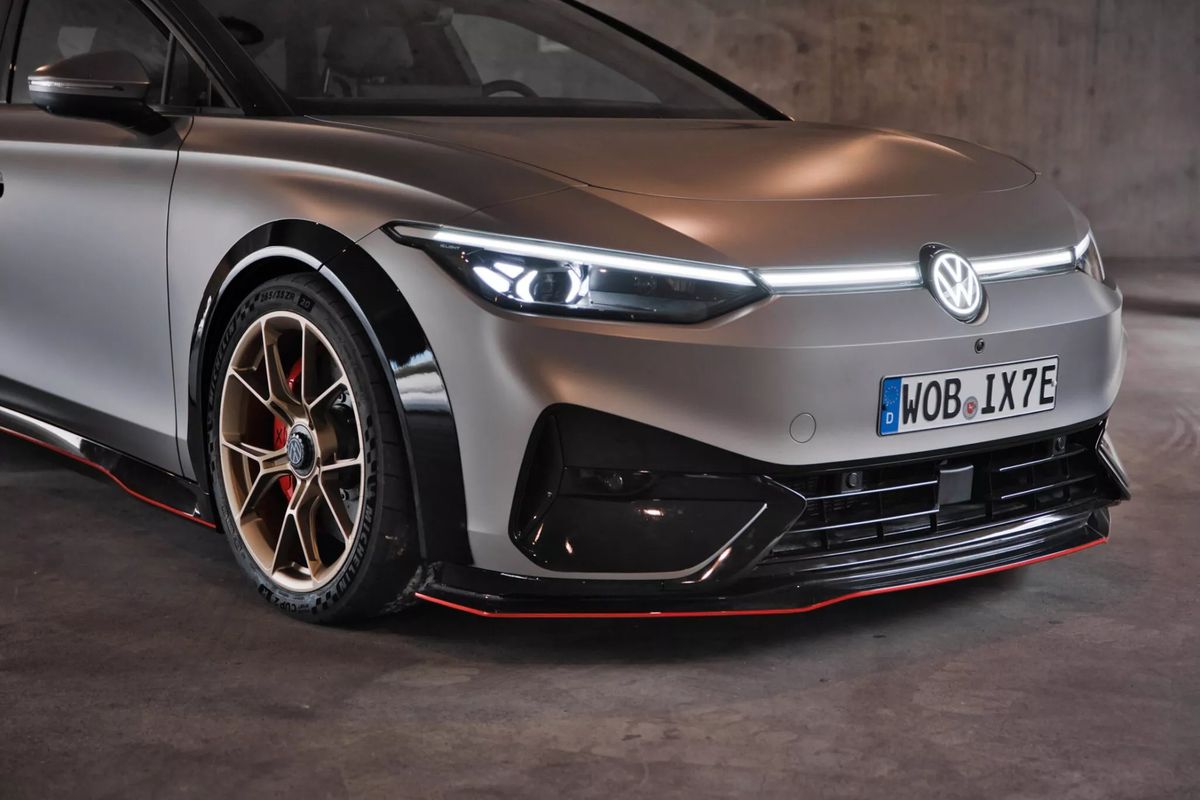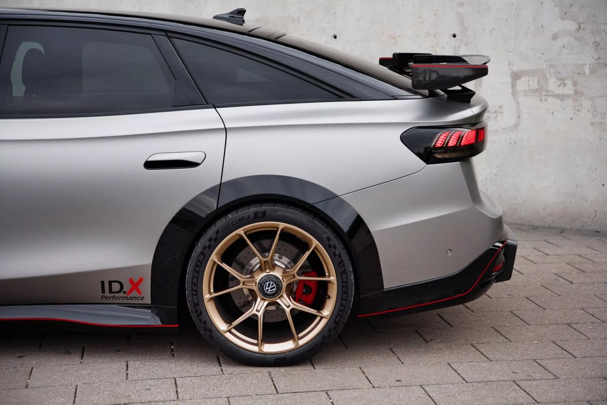 We’ve already had a GTI-branded concept unveiled, but what you see here pushes the envelope even further. It’s called the Volkswagen ID X Performance concept and it takes the ID.7 sedan to another level. Visually, it looks like something from the Fast and the Furious franchise with its ostentatious aerodynamic aids. We could swear those 20-inch gold wheels wrapped in performance Michelin Pilot Sport Cup rubber are straight from Porsche too.