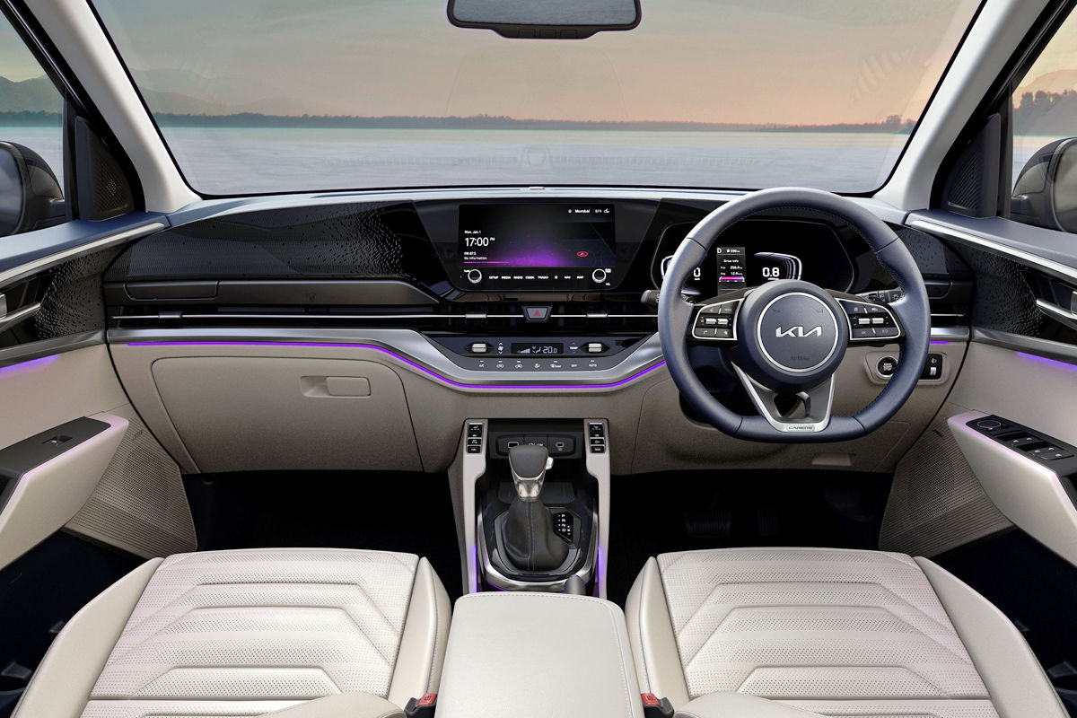 In India, the Carens is available with a choice of 1.5-litre engines, each driving the front axle: a naturally aspirated petrol unit (with a 6-speed manual gearbox), a turbopetrol motor (with either a 6-speed manual or a 7-speed dual-clutch transmission) and a turbodiesel mill (using either a 6-speed manual or a 6-speed torque-converter automatic cog-swapper).