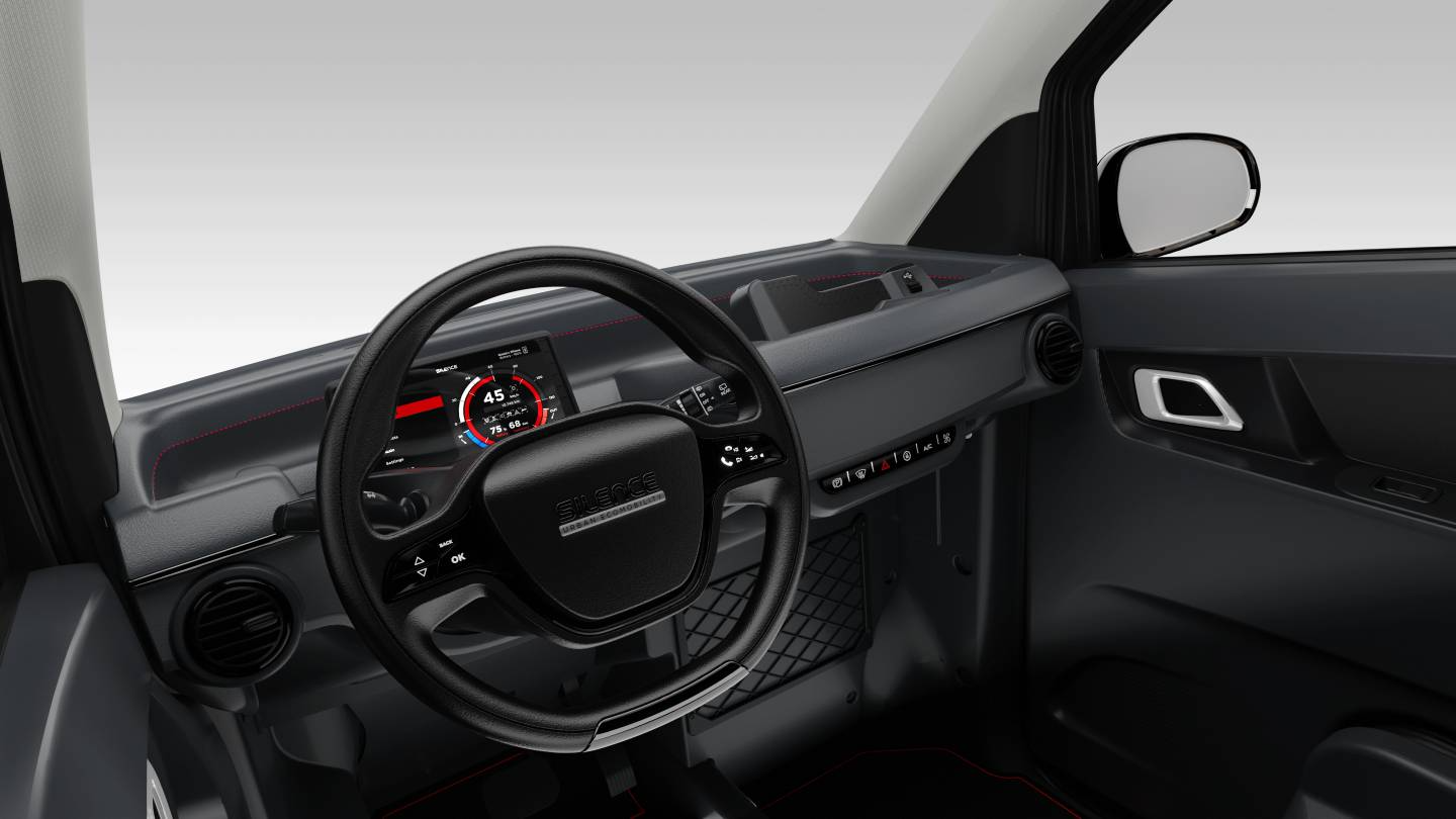 “There was no audio equipment or Bluetooth (Silence will include the features in the production version) and, although the S04 does not have an infotainment screen for Google Maps and other apps, it does include a well-integrated holder for a smartphone or tablet. The car also had built-in charging cables with various connectors, USB ports, electric windows and -side mirrors (there is no centre mirror) and aircon.”