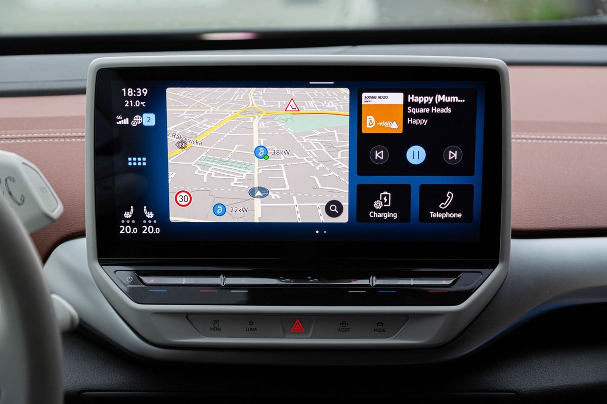 In terms of ride quality, the ID.4 rode a bit more firmly than we expected, especially at city speeds (even though the 19-inch alloys were shod with 235/55 tyres, which should improve bump absorption). Maybe the cobbled streets of Krakow or the generally stiffer suspension setup (a characteristic of most EVs) was to blame, because the Volkswagen’s ride improved markedly once left the inner city behind.