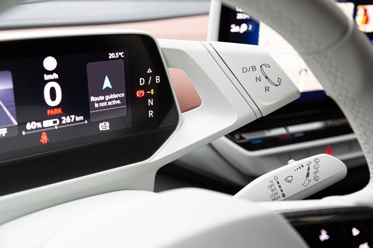 We loved the Volkswagen ID.4’s sheer user-friendliness. Simply get in, put on your seatbelt and the car’s ready to drive. Oddly, it features an on/off button, but we didn’t need to push it. You could step out of the vehicle, close the door and it would switch off. The transmission’s selector knob looks suspiciously like the unit found in the BMW i3, with a column-mounted unit that also activates the brake regeneration.