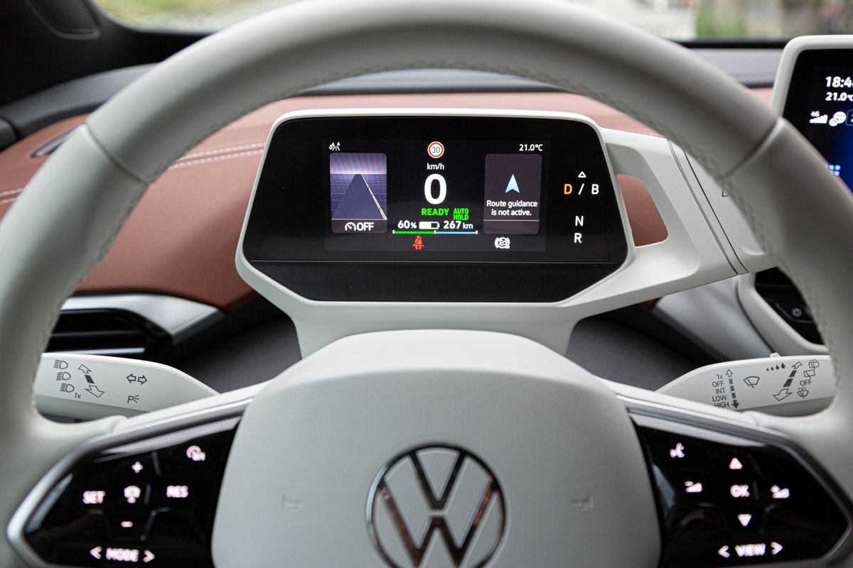 The ID.4’s brake regeneration system is one of the more conservative setups we’ve come across – there is no sensation of harsh deceleration when you lift your foot off the accelerator pedal. You can let the car automatically recover energy or force it to “harvest more intensely” via the dashboard-mounted selector.