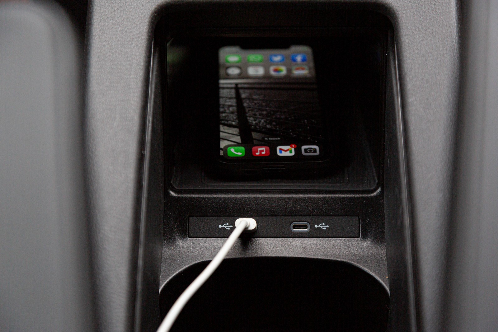 The cabin layout is, in a word, minimalistic and you notice the lack of a transmission selector and -tunnel. Because the selector is integrated with the instrument cluster housing (more on that later) there is extra storage space and cupholders. Volkswagen has also fitted a wireless charging pad and 2 USB-C ports.
