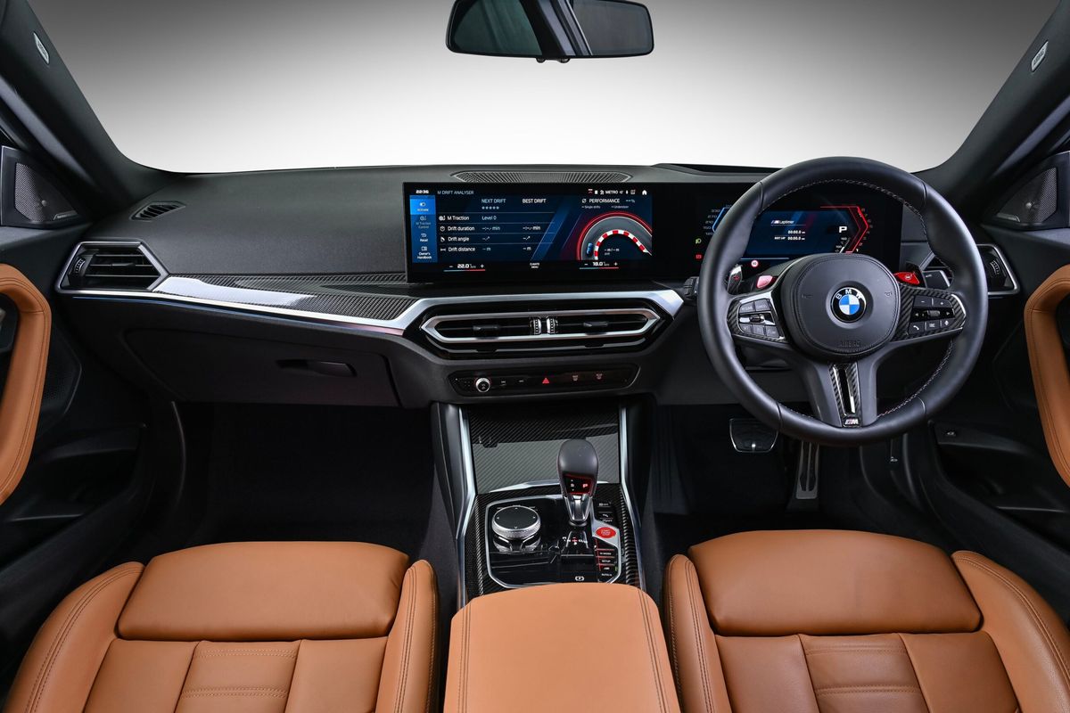 The instrument cluster and digital displays will be very familiar to owners of modern BMWs; nothing stands out as particularly unique to the M2 aside from the inserts in the headrests of the seats. The iDrive 8 operating system (as in the facelifted 3 Series) is very fast, rich with functionality and highly customisable – just spend some time familiarising yourself with common settings before heading out.