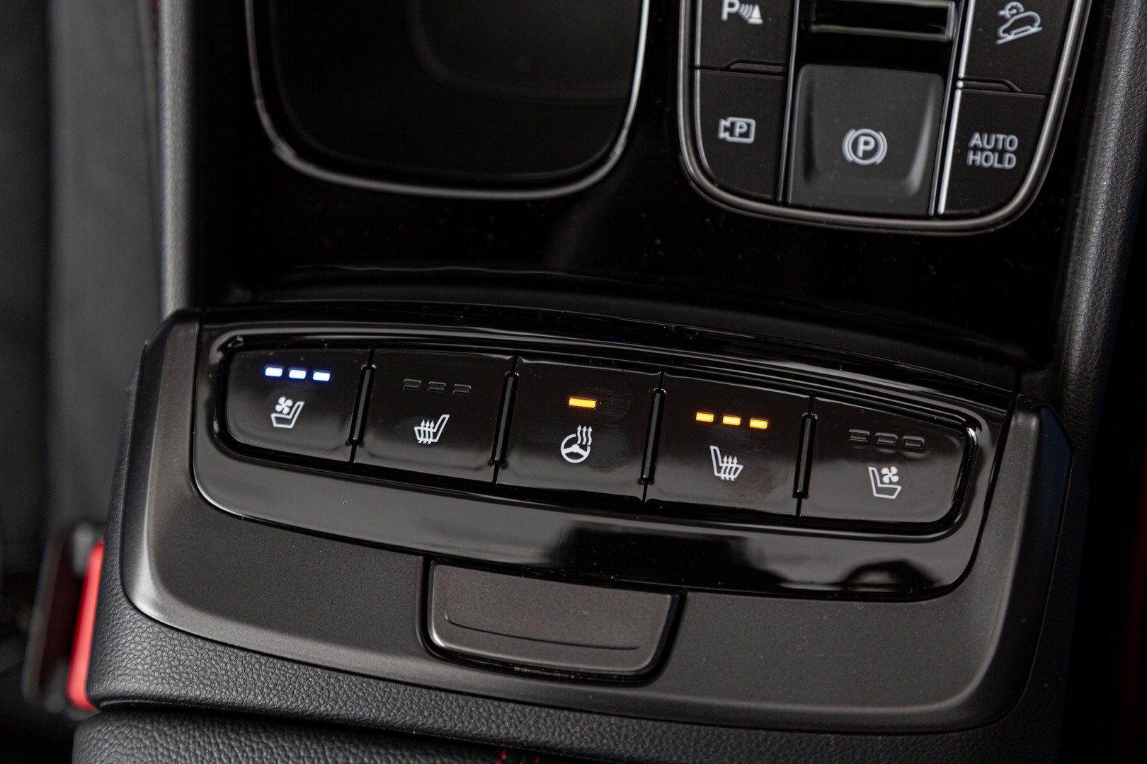 Hyundai tends not to go overboard with interior accents; the Tucson N Line features subtle N badging and red stitching.