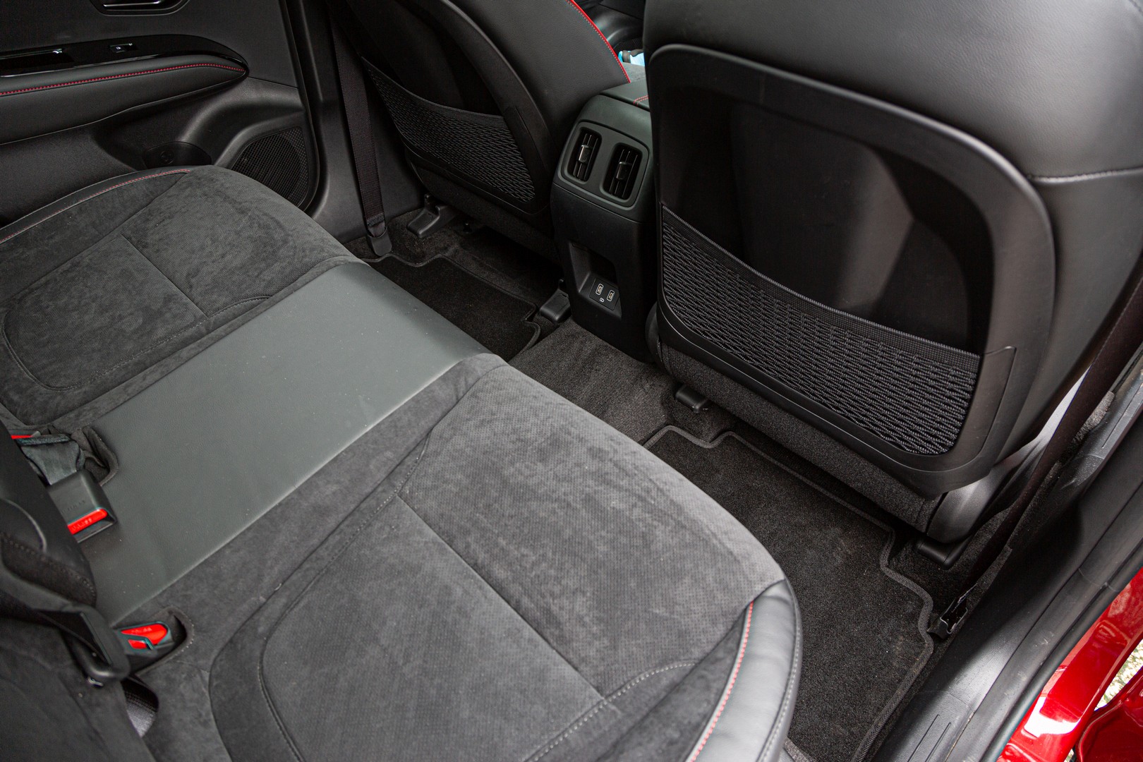 Rear legroom is on par for the segment. Clever seatbacks make room for knees.