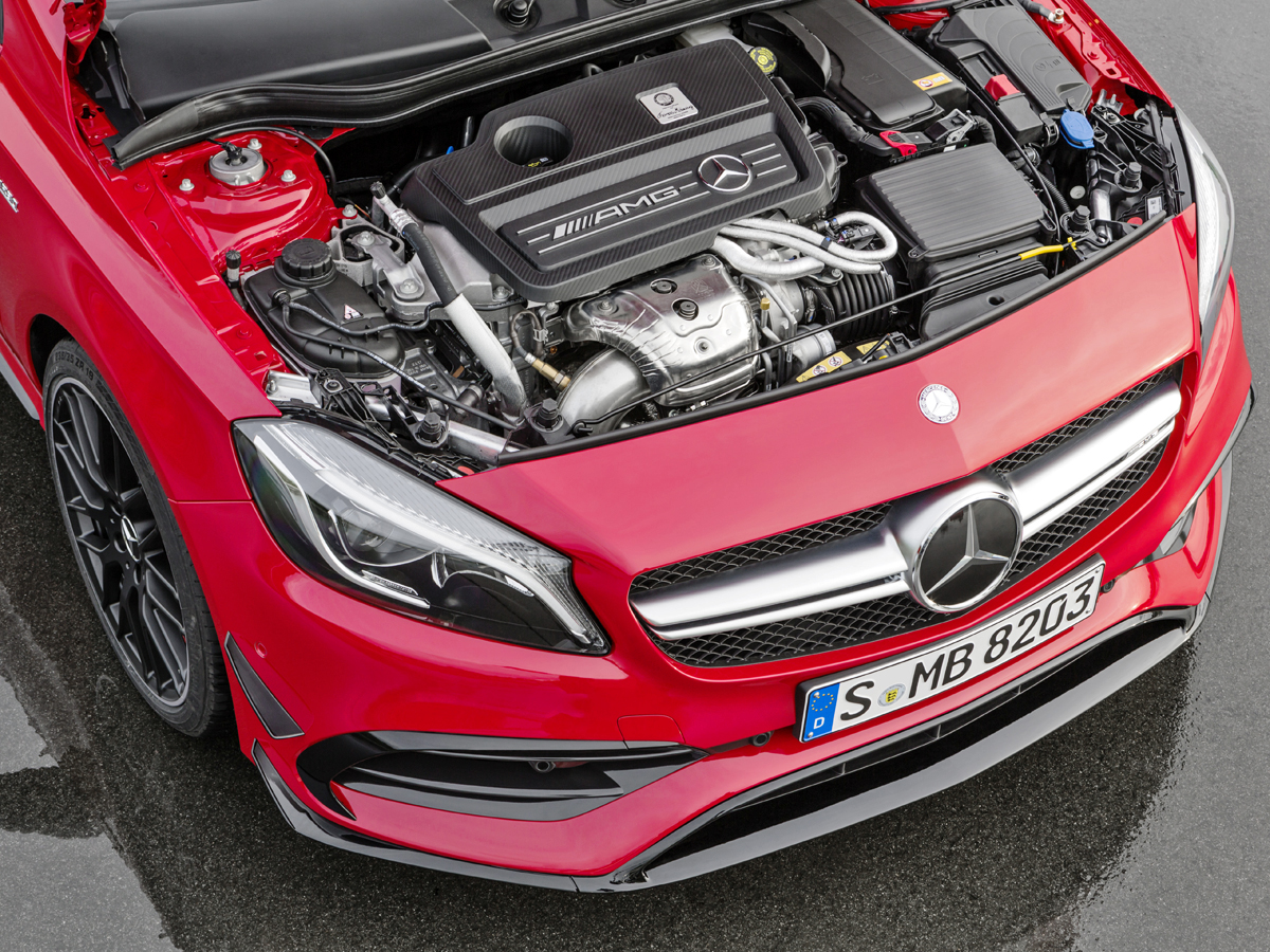 The A45 (pictured here featuring the AMG Aerodynamics package) pushed the power envelope.
