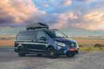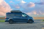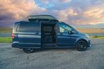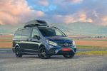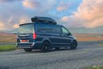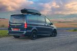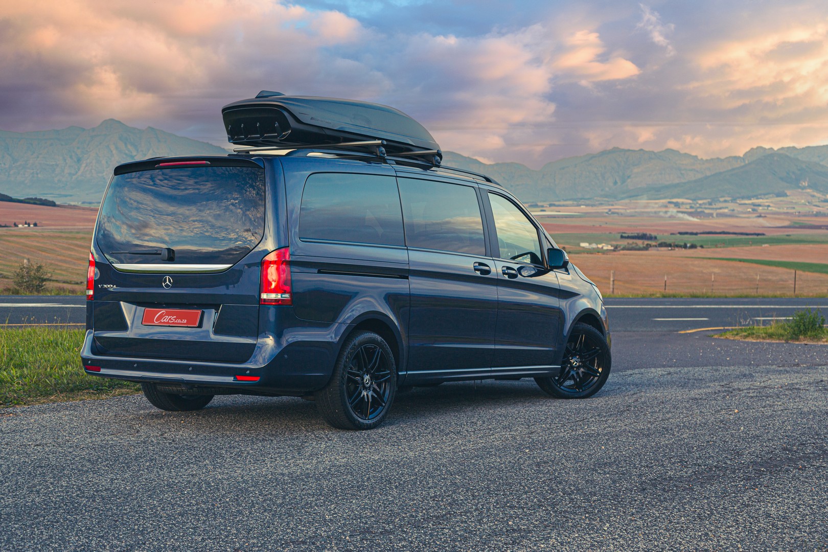 The V300d is distinguished by its Sodalite blue paint finish and the AMG-branded roof box.