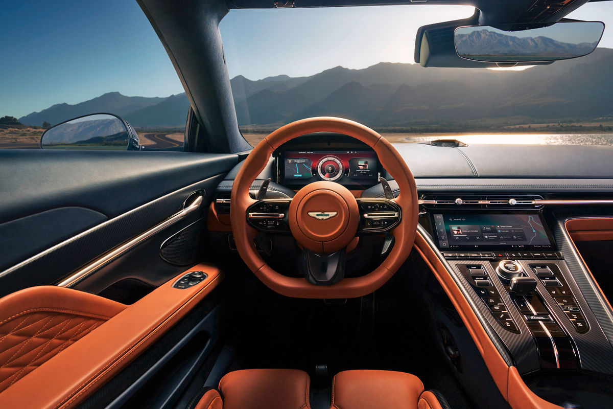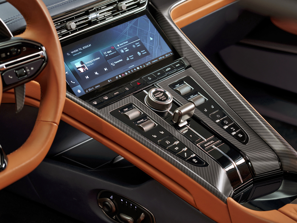 The new Aston Martin DB12 cabin features a mix of digital and analogue controls.