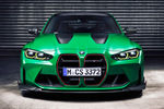 The CS-badged 4-door model – which features a model-specific frameless grille (complete with red contour lines) as well as yellow BMW Laserlight headlights – will thus complete the obligatory 0-100 kph sprint in a claimed 3.4 seconds, which makes it a tenth quicker to the mark than the all-paw M3 Competition. BMW claims the newcomer will reach 200 kph in 11.1 seconds, while the fact the M Driver’s Package ships standard results in an electronically limited top speed as high as 302 kph.