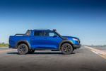 The “purpose-designed” lift kit and tyres increase the ground clearance from 232 mm to 266 mm and boost the vehicle’s overall height from 1 810 mm to 1 875 mm. The standard bakkie’s claimed wading depth of 800 mm climbs to 865 mm, while the approach angle improves to 33 degrees, the departure angle to 23 degrees and the break-over angle to 34 degrees.
