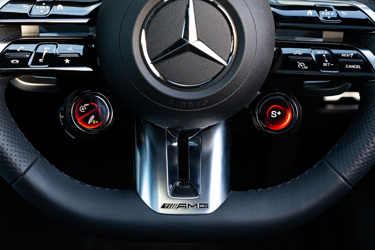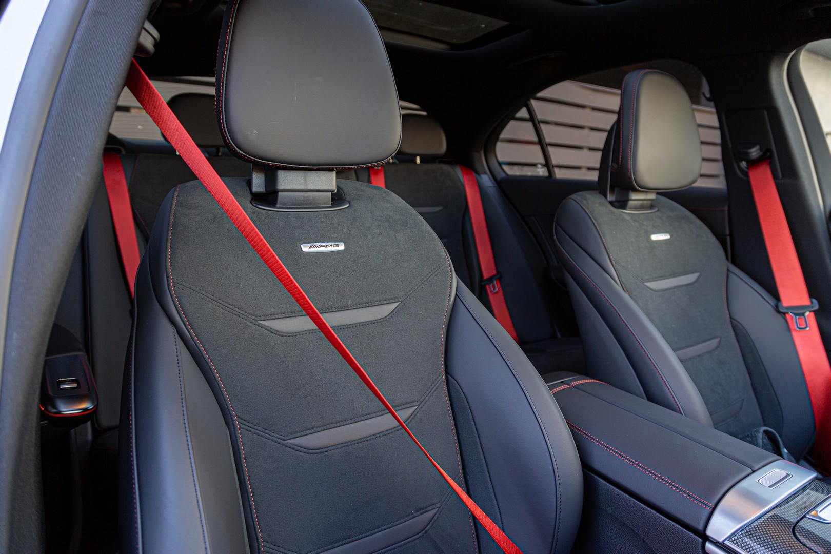 Meanwhile, the AMG-branded sports seats (with heating) are a treat. Not only do they look the part, they offer a nice balance between support and comfort. The red seatbelts (a no-cost option) look racy too.