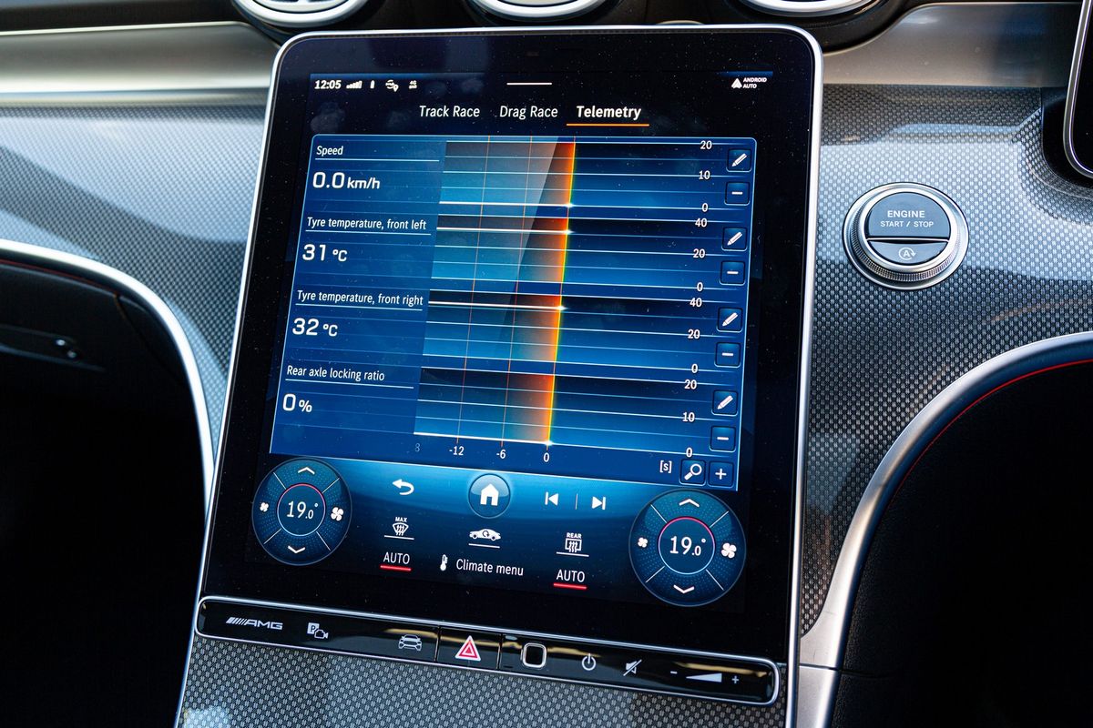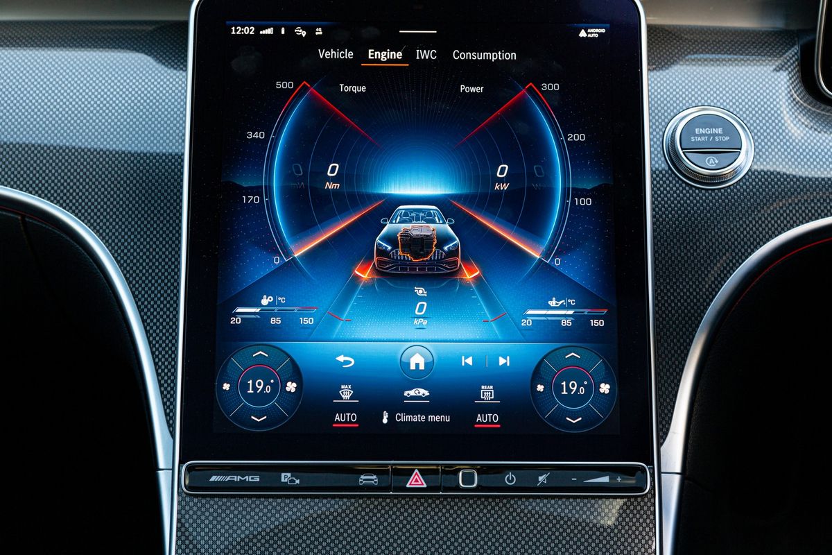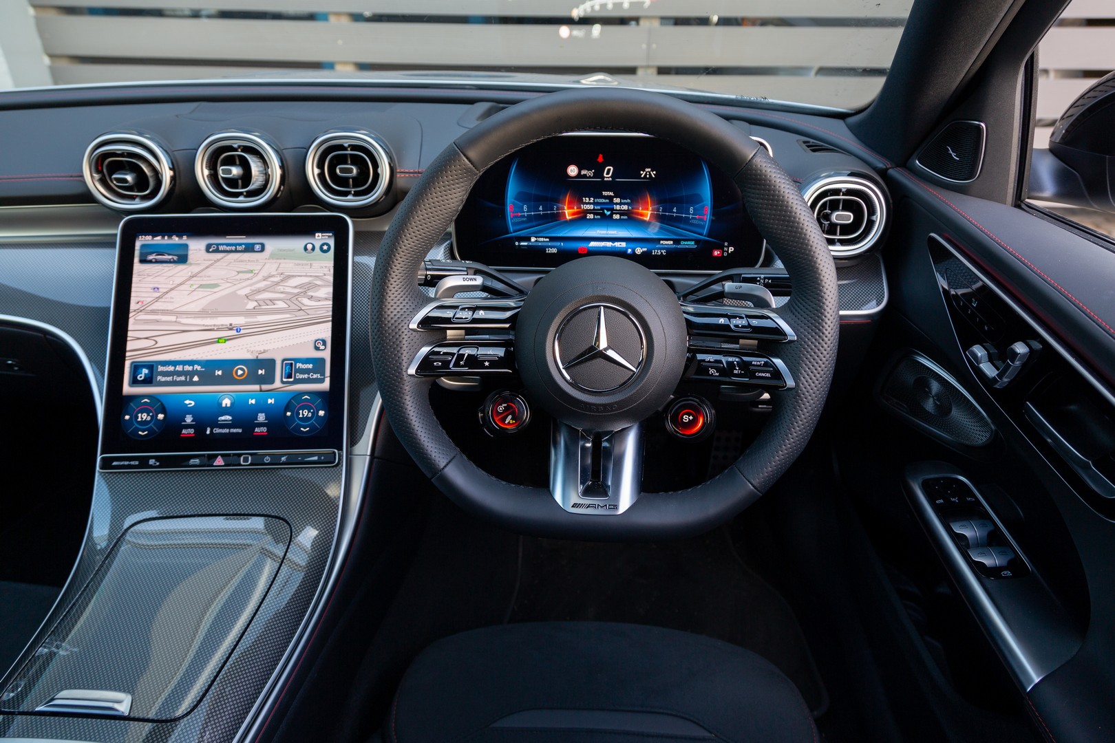 The Mercedes-AMG C43’s cockpit is a technological tour de force and beautifully finished.