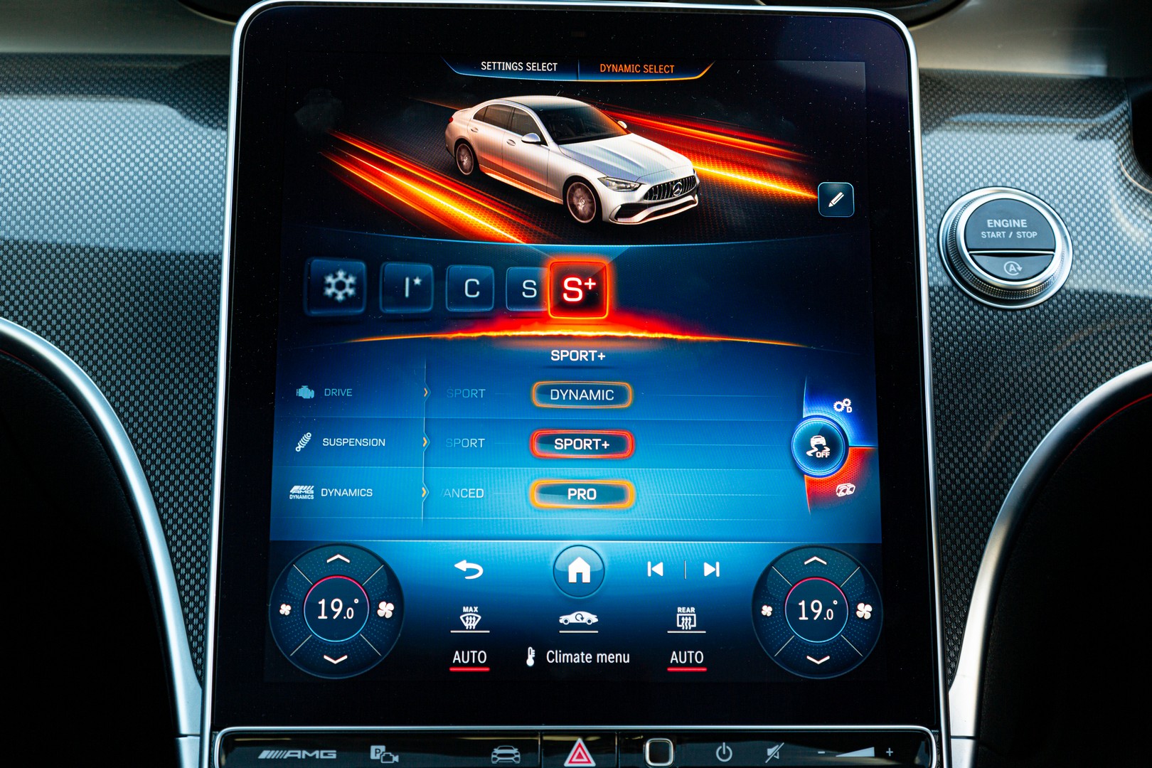 In the C43, you get the Advanced Plus package as standard – it incorporates nice-to-have features such as the expanded MBUX interface, Apple Carplay/Android Auto compatibility, a wireless charging pad, heated and electrically adjustable seats, automatic parking and auto high beam (to name but a few).