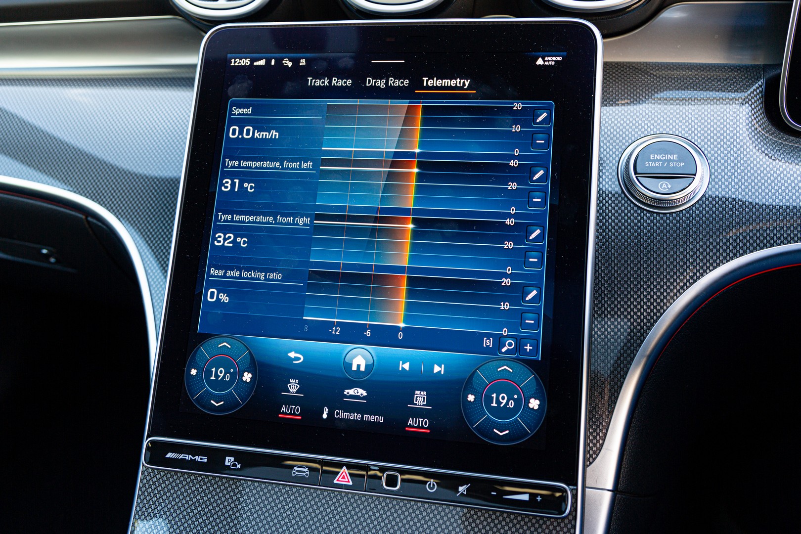 We were particularly impressed with the vehicle’s powertrain customisation. You can tweak a plethora of the C43’s powertrain and suspension settings to your heart’s content, and our test unit came equipped with Mercedes-AMG TrackPace onboard telemetry, which will probably represent information overload for most consumers. For us car nerds, however, well, we lapped it all up and loved the interface.