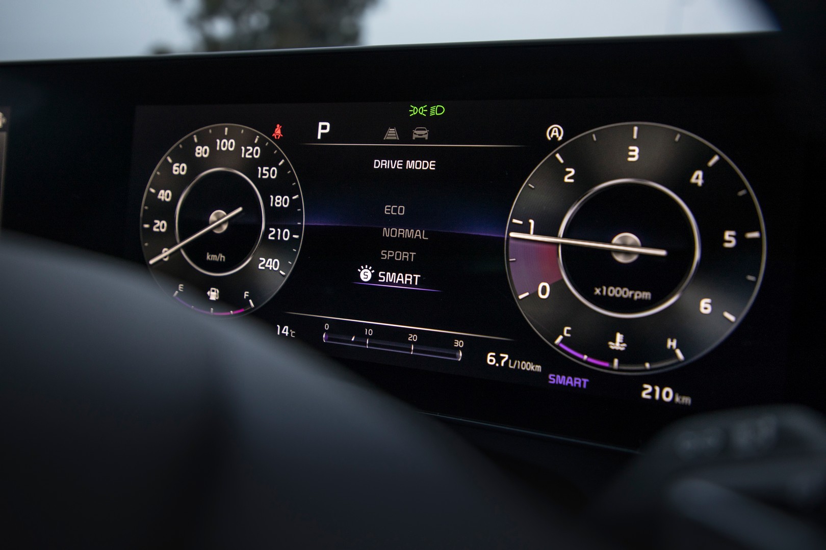 A driver can toggle between the various drive modes on the Sportage’s digital instrument cluster.