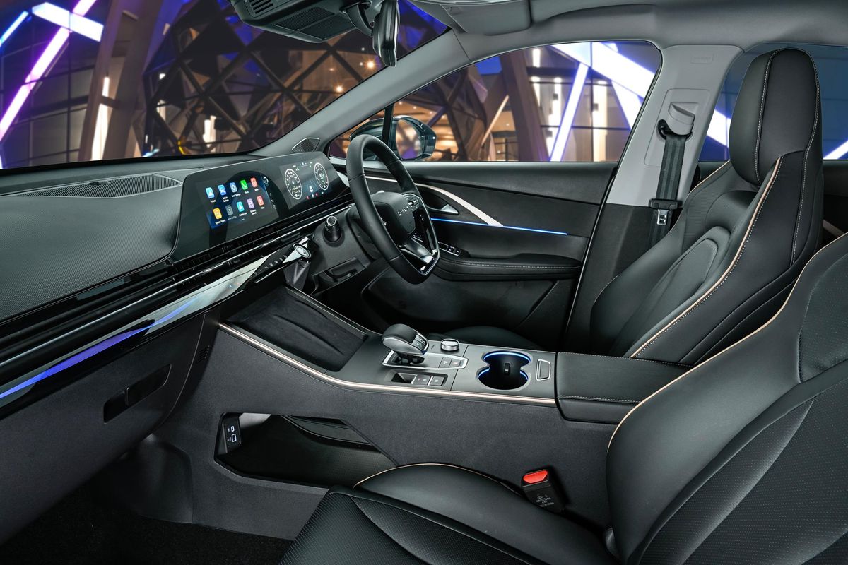 The Omoda C5’s sporty looks are backed up with a punchy 1.5-litre turbopetrol engine under the bonnet (with peak outputs of 115 kW and 230 Nm), paired with a continuously variable automatic transmission.