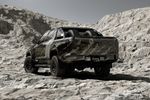 Even though the Triton XRT Concept is wrapped in camouflage, the underlying design imparts a strong visual impact with a large sculpted bonnet, slim LED units and a large upright grille. The squared-off wheel arches are filled by chunky off-road tyres and the concept also shows a rear sports bar.