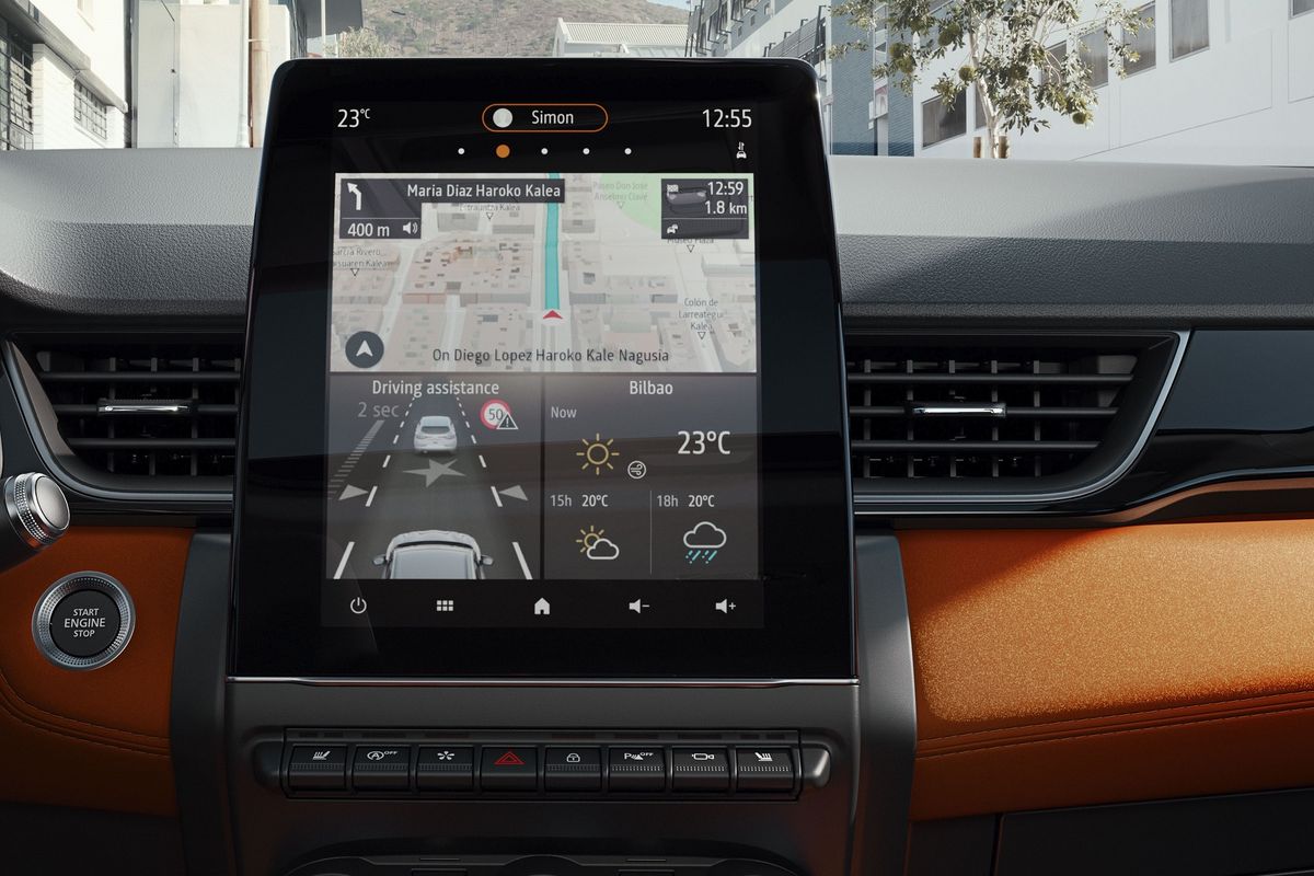 7-inch driver screen with navigation Easy Link 7-inch with Apple Carplay/Android Auto, Arkamys audio 2 USB, 1 Aux, Bluetooth input Speed limiter / cruise control Tyre pressure sensors Daytime running lights LED rear lamps Front and rear parking sensors Reverse parking camera Automatic climate control Multifunction steering wheel Renault hands-free card with entry and ignition