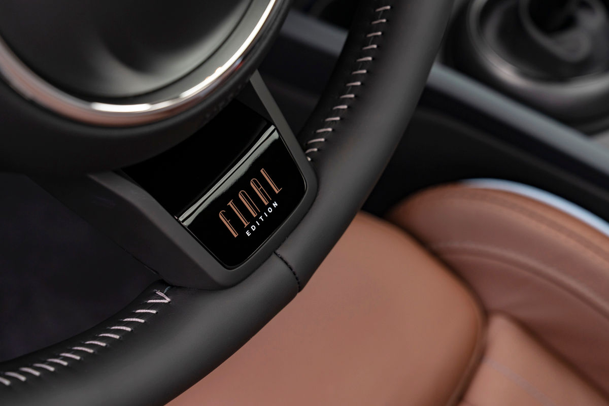 Inside, the Clubman Final Edition scores sill trims with “Final Edition” lettering, a feature also found on the lower spoke of the Nappa leather sports steering wheel. The leather sports seats (with adjustable thigh support) likewise gain a sewn-in edition badge and are finished in Dark Maroon with an anthracite-coloured Piquet fabric insert and blue stitching.