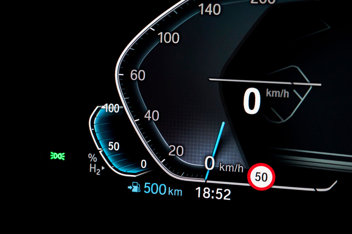 BMW gets its fuel cells from Toyota – its long-standing technical partner – but the rest of the drivetrain is proprietary. How does it all work? A chemical reaction takes place in the fuel cell between gaseous hydrogen (from the two 700-bar tanks, made from carbon-fibre-reinforced plastic) and oxygen from the air. The fuel cell delivers 125 kW, while the e-motor adds a further 170 kW, for a total output of 295 kW.