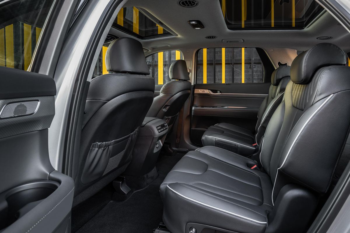 Thanks to some new safety features, the 2023 Palisade scored 5 stars in the Australian standard crash test programme (ANCAP), which tests right-hand-drive cars. The model is now specced with forward-collision avoidance, lane-keep assist, blind-spot monitoring, adaptive cruise control and safe exiting (an alert goes off if you attempt to open the doors while traffic is closing in on the vehicle).