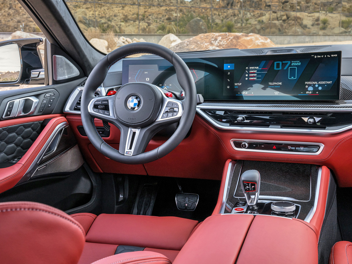 Other new features inside include a broad interior trim strip in Fineline Black wood with a high-gloss metal effect, an ambient light bar with backlighting (and the addition of an “M” logo to its graphic) and an M leather-trimmed steering wheel with new carbon gearshift paddles.