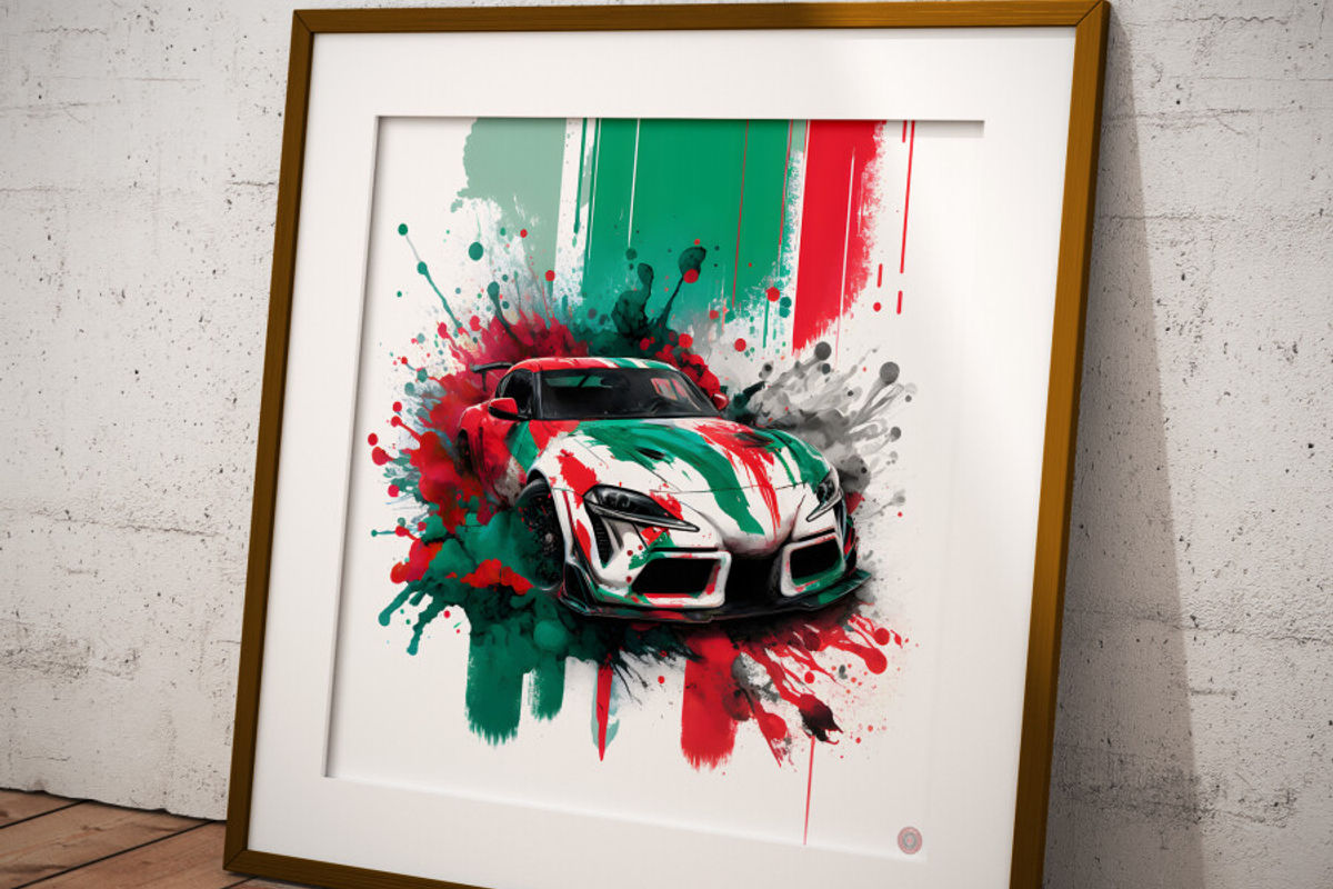 “During the creative process, I visualised famous car colour schemes coming to life in a veritable explosion of paint. With MidJourney’s assistance, I was able to generate unique designs that I then meticulously refined and tweaked using Photoshop,” Crawford adds.