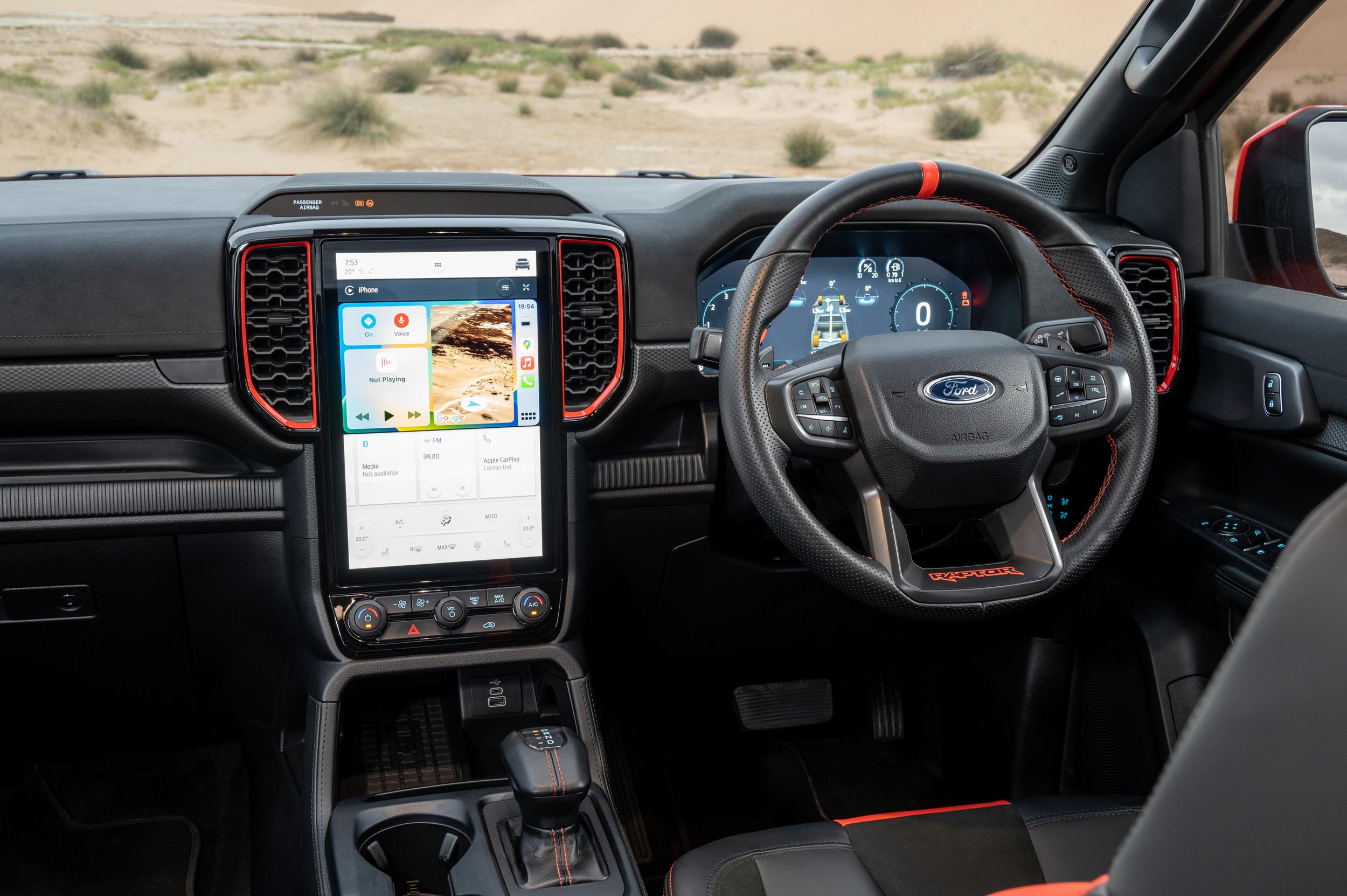 The Ford Performance model’s suspension set-up includes a Watt’s link rear end and FOX 2.5-inch Live Valve Internal Bypass shock absorbers. There’s a new permanent 4-wheel-drive system which has gained an electronically controlled on-demand 2-speed transfer case, combined with front and rear locking differentials, while the V6 breathes out through an electronically controlled active exhaust system with modes such as Quiet, Normal, Sport and Baja.