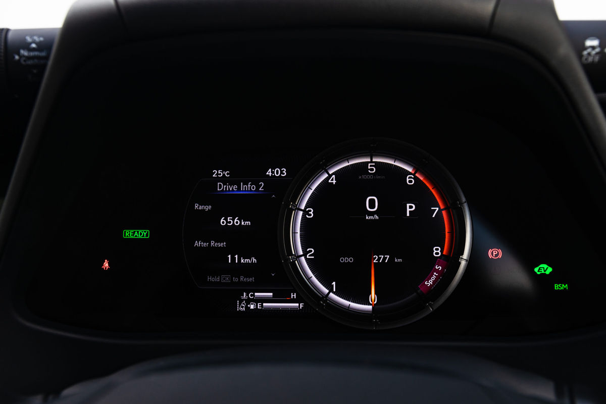 The Lexus UX 250h F Sport’s digital instrument cluster draws inspiration from the unit in the LFA supercar.