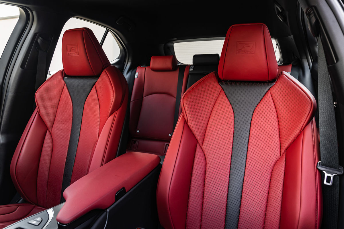 The Lexus UX 250h F Sport is available with racy-looking Flame Red leather upholstery.
