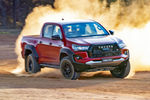 While the Australian-spec Hilux GR-Sport features the same engine tune – taking the 2.8-litre, 4-cylinder turbodiesel unit’s peak outputs from the standard 150 kW and 500 Nm to 165 kW and 550 Nm – as the version offered in South Africa since September 2022, it gains considerably wider tracks as well as a far more aggressively styled front end (improving the approach angle to 30 degrees), complete with a skid plate.