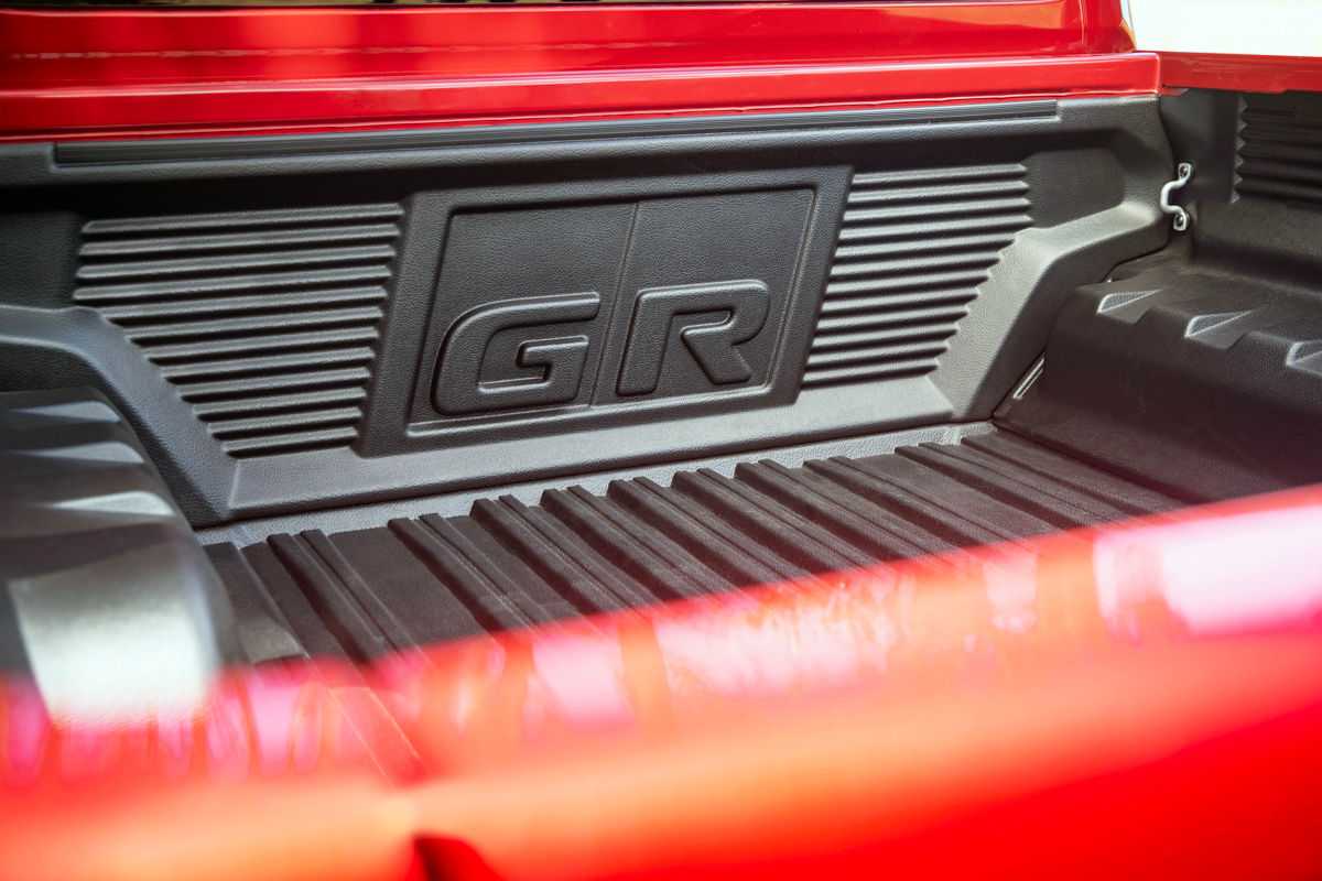 The grille, too, differs from that of the SA-spec version, as does the design (not to mention hue) of the 17-inch alloy wheels, which are here wrapped in all-terrain tyres. The black wheels furthermore frame red brake callipers (while the rear drums are replaced with discs) and the load bay features an embossed “GR” logo. Round back, you’ll likely also notice this model’s red recovery points. Interestingly, this version does without a sports bar, an item that is included as standard in SA.