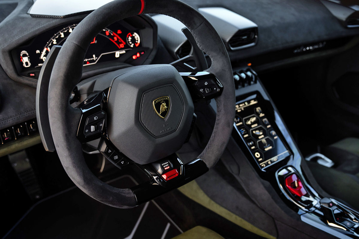 The ground clearance has been increased by 44 mm compared with the Huracán Evo, while the front and rear track widths grow by 30 mm and 34 mm, respectively. The Sant’Agata Bolognese-based firm’s designers have furthermore added aluminium underbody protection, reinforced sills, a rear diffuser and prominent wheel-arch extensions, along with extra LEDs on the front end, roof rails and a scoop feeding clean air to the rear-mounted engine.