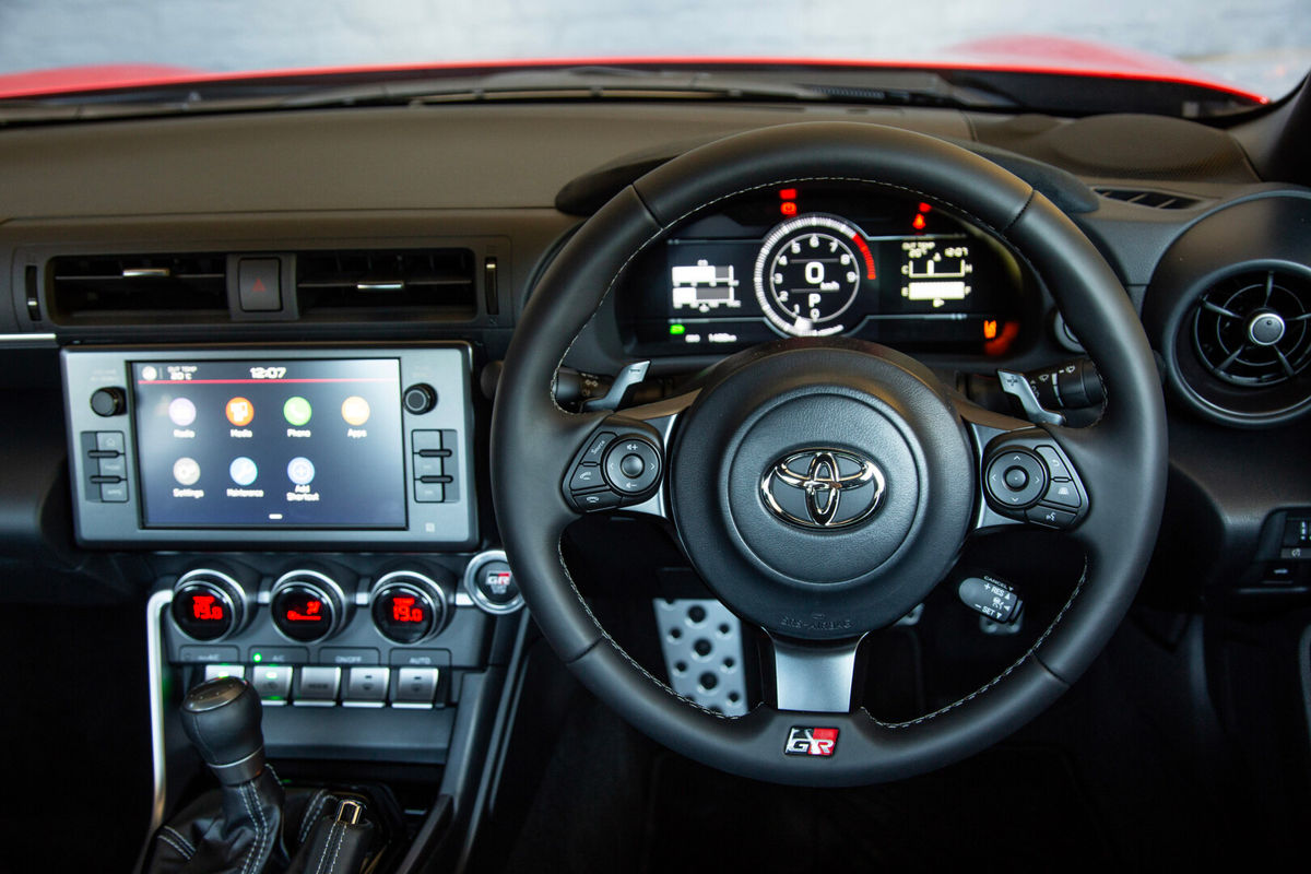 Drivers can toggle between 3 drive modes and the stability control system has been fettled to make it easier to exploit the sportscar’s abundant abilities with greater confidence. That said, together with the increased performance, the GR86’s rear end is much more manageable than before; there’s less of an ominous threat of sudden oversteer. This level of systems intervention lessens through Sport mode before leaving you to your own devices – and insurance policy – in Track mode.