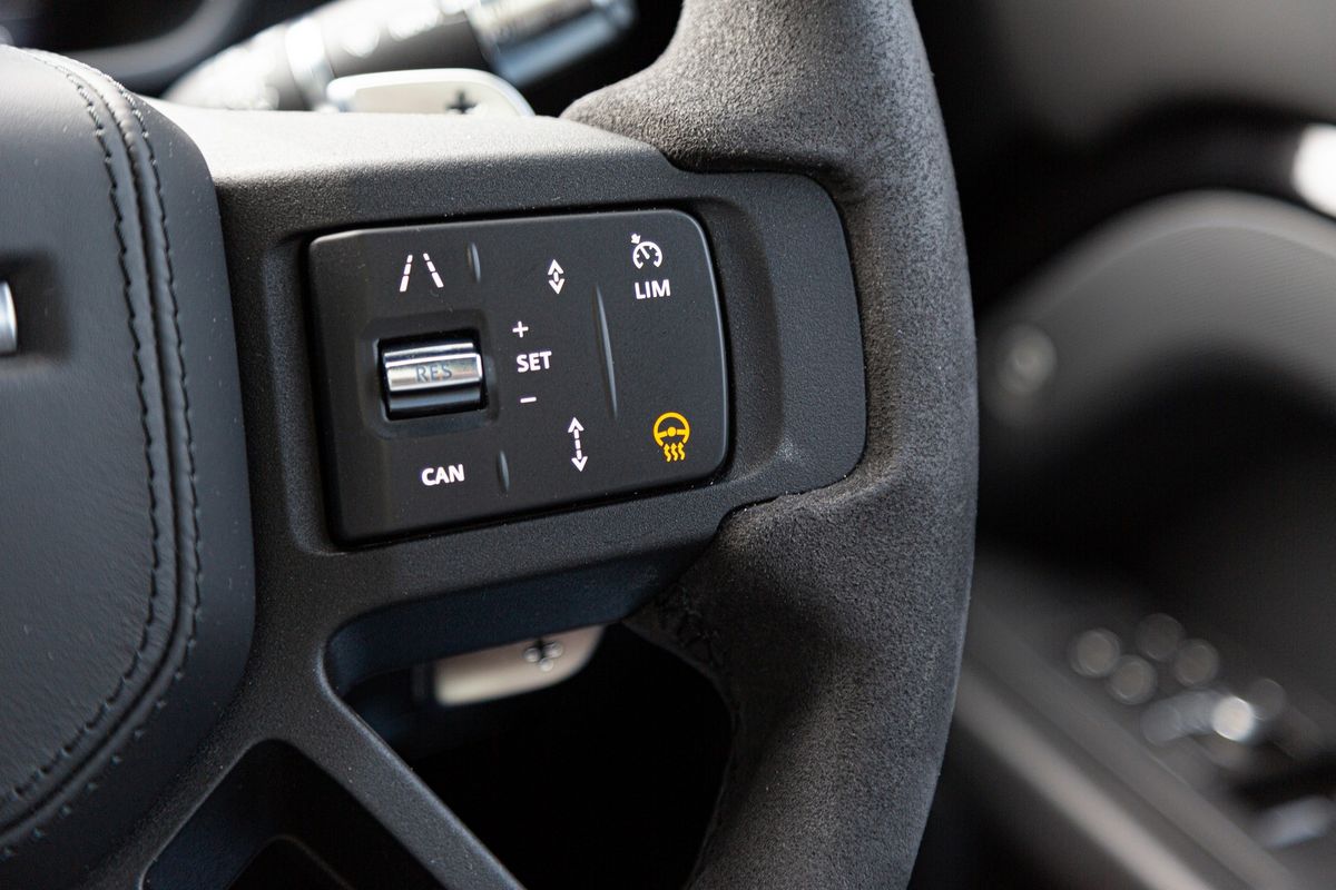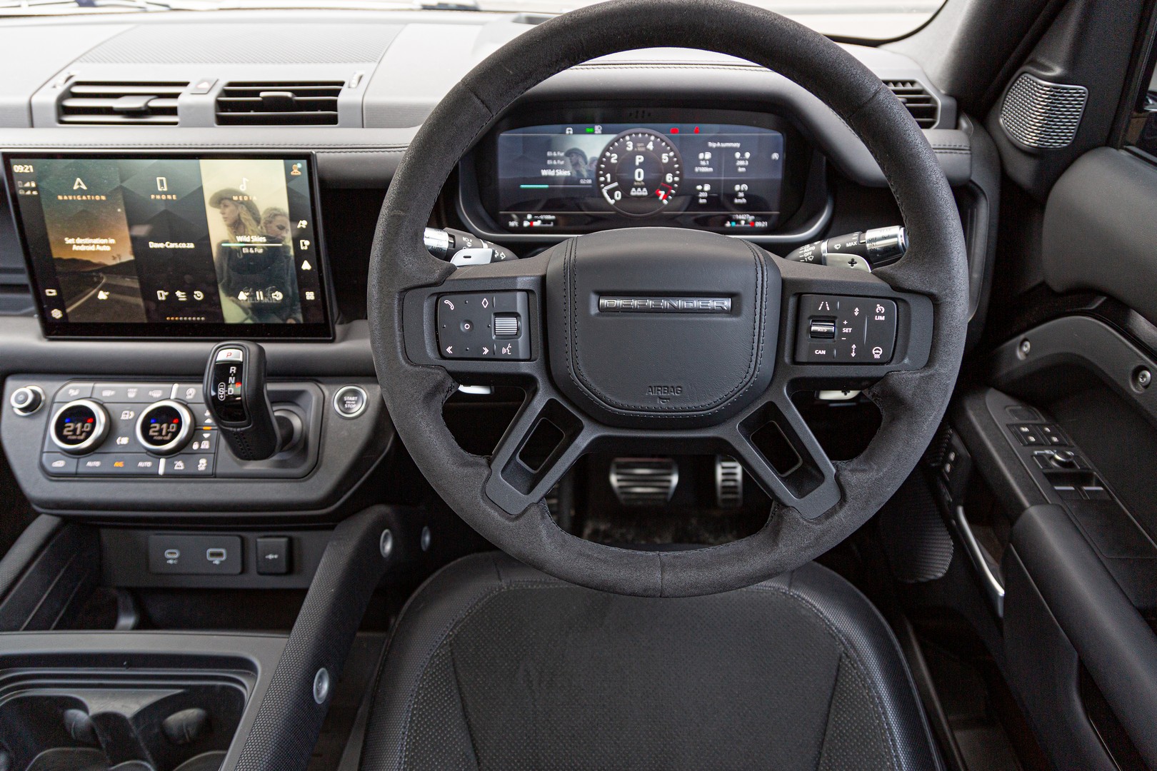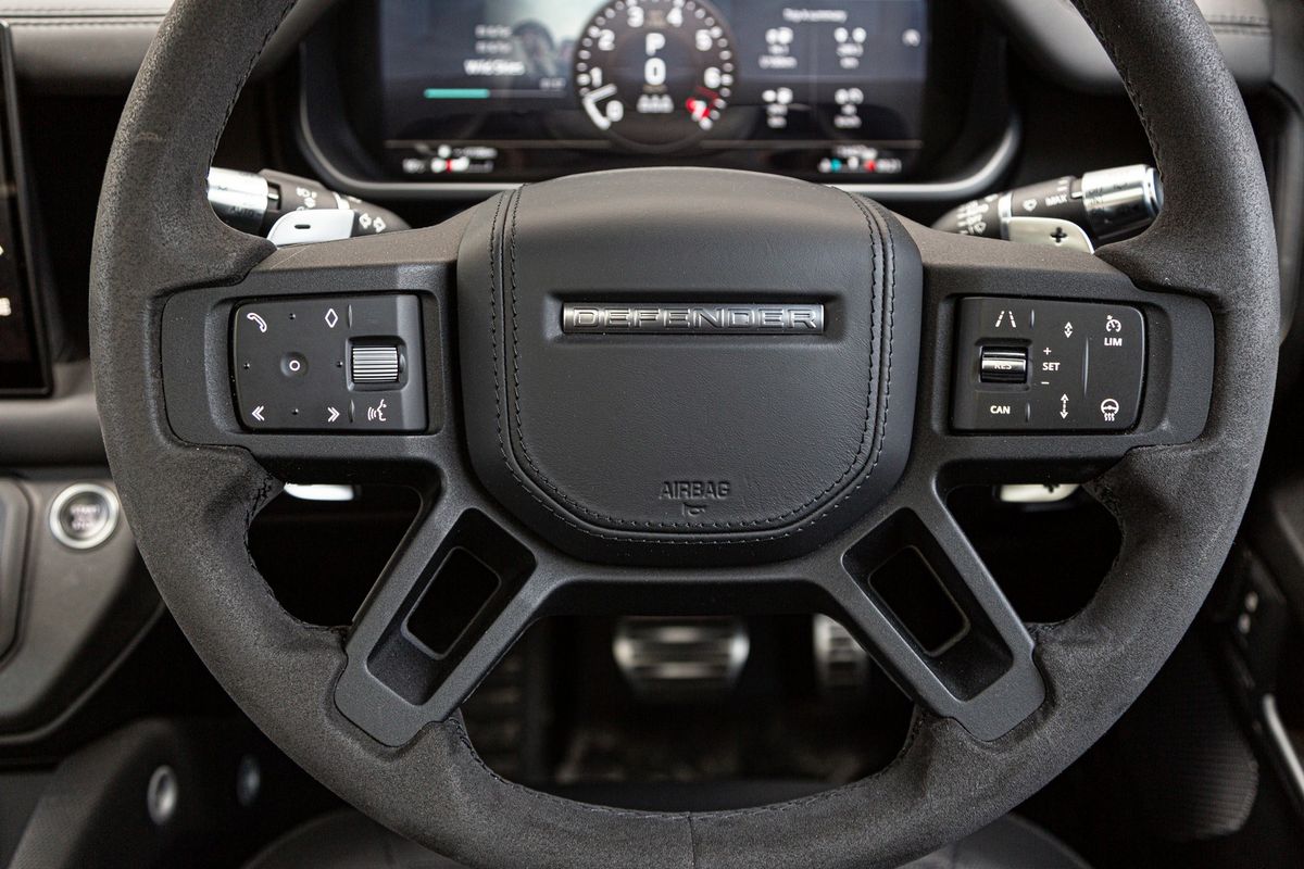 Given that this is a performance-oriented Defender, the engineers in Solihull have tuned the V8’s air suspension to compensate for the heavier engine – and its performance potential. Land Rover says the flagship has bespoke spring and damper rates, with an electronic active rear diff, which is said to provide “more engaging handling and improved body control.”