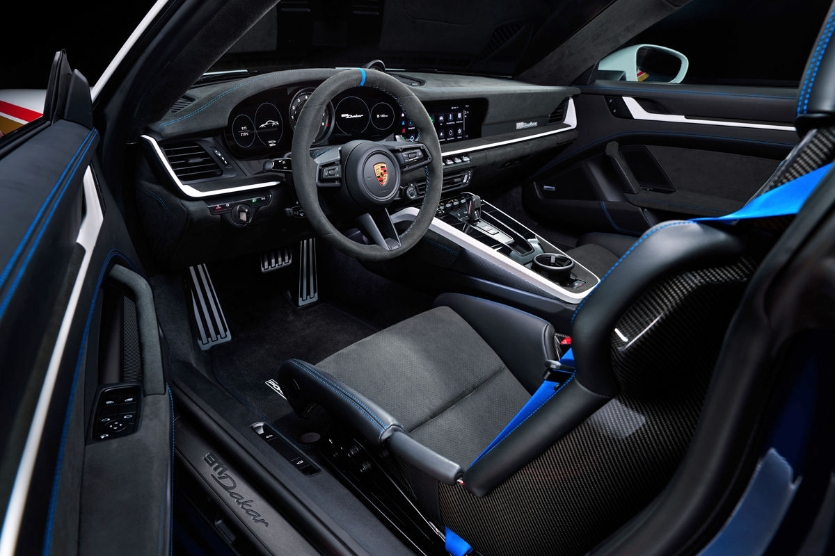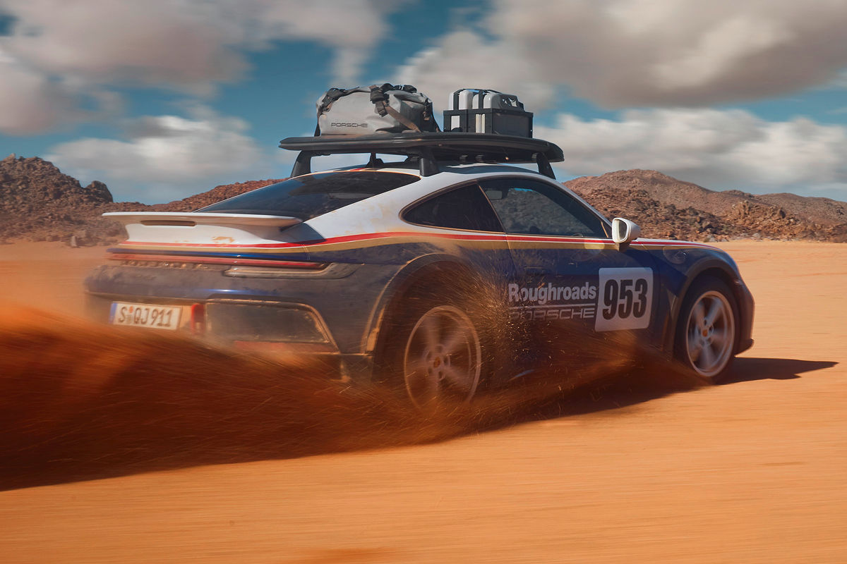 The list of standard equipment includes rear-axle steering, 911 GT3 engine mounts and anti-roll stabilisation. As a result, the automaker says the 911 Dakar is “just as dynamic on sand and loose surfaces as it is on the Nürburgring Nordschleife”. The 911 Dakar furthermore boasts a fixed lightweight rear spoiler fashioned from carbon-fibre reinforced plastic and a front luggage compartment lid (with air outlets pilfered from the 911 GT3) made from the same material.