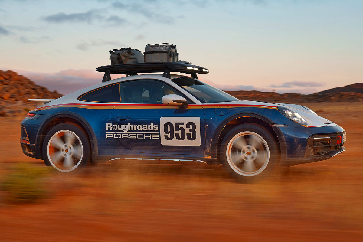 The 911 Dakar also scores a pair of new driving modes. The first is Rallye mode, which is designed for “loose, uneven surfaces” and features a “rear-focused” slant on all-wheel drive. In Off-Road mode, the high clearance is automatically activated. In either setting, there’s also a new Rallye Launch Control system, which Porsche says enables “impressive acceleration” on loose surfaces and allows wheel slippage of around 20%.