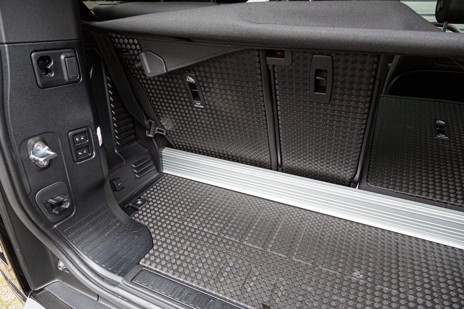 As the Defender V8 is a derivative with the 90 body style, luggage space has been sacrificed for rear legroom.