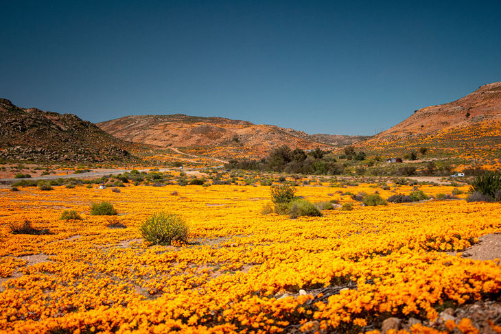 To me, Day 2 was the highlight of the trip. We headed north towards the town of Nababeep. This once thriving mining hub of the De Beer family is now a forgotten little town. Just outside the town, we drove into a valley of beautiful orange flowers which carpeted the landscape. We successfully found the Namaqualand wildflowers in full bloom and, like typical tourists, we frolicked in the flora and captured some colourful and vibrant images.
