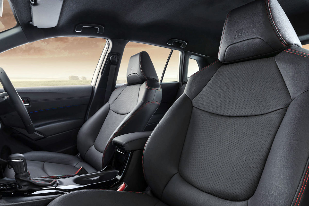 Inside, you’ll find more GR-Sport badges (including on the start button), along with leather upholstery with red stitching (as opposed to partial leather offered on the XR) and model-specific treatment for the CVT shift lever and knob.