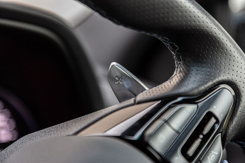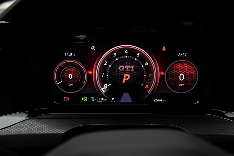 First impressions count for a lot and the Golf GTI doesn’t disappoint in this regard. Not only does its cabin look premium and sporty, but it’s minimalist – and eminently classy. The Wolfsburg-based brand’s Innovision cockpit is a deeply impressive piece of kit; it displays its themes and data in a futuristic manner. Also, the lack of a conventional transmission lever is very noticeable; Volkswagen opted to fit a pleasantly neat (shift-by-wire) thumb-sized toggle instead.